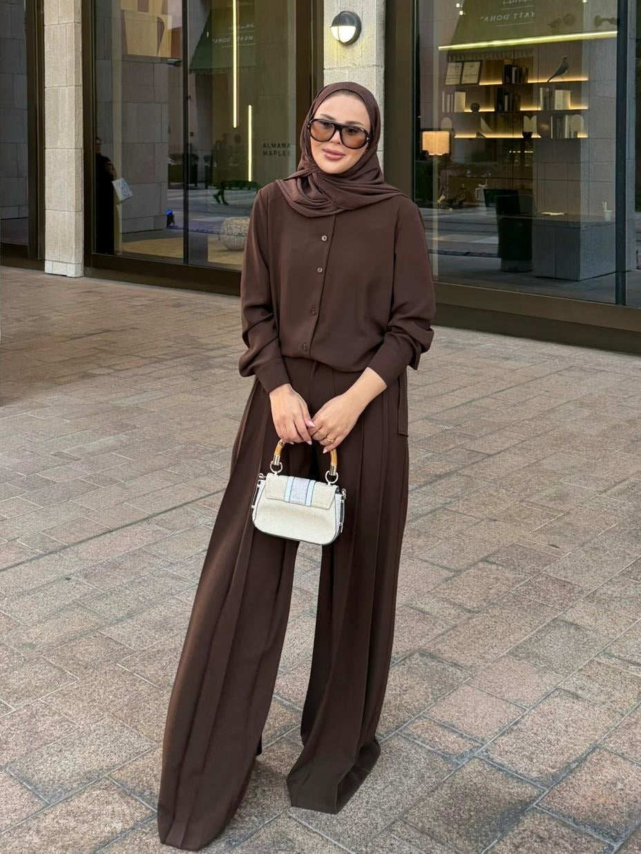 Daphne Pleated Pants Set – Brown