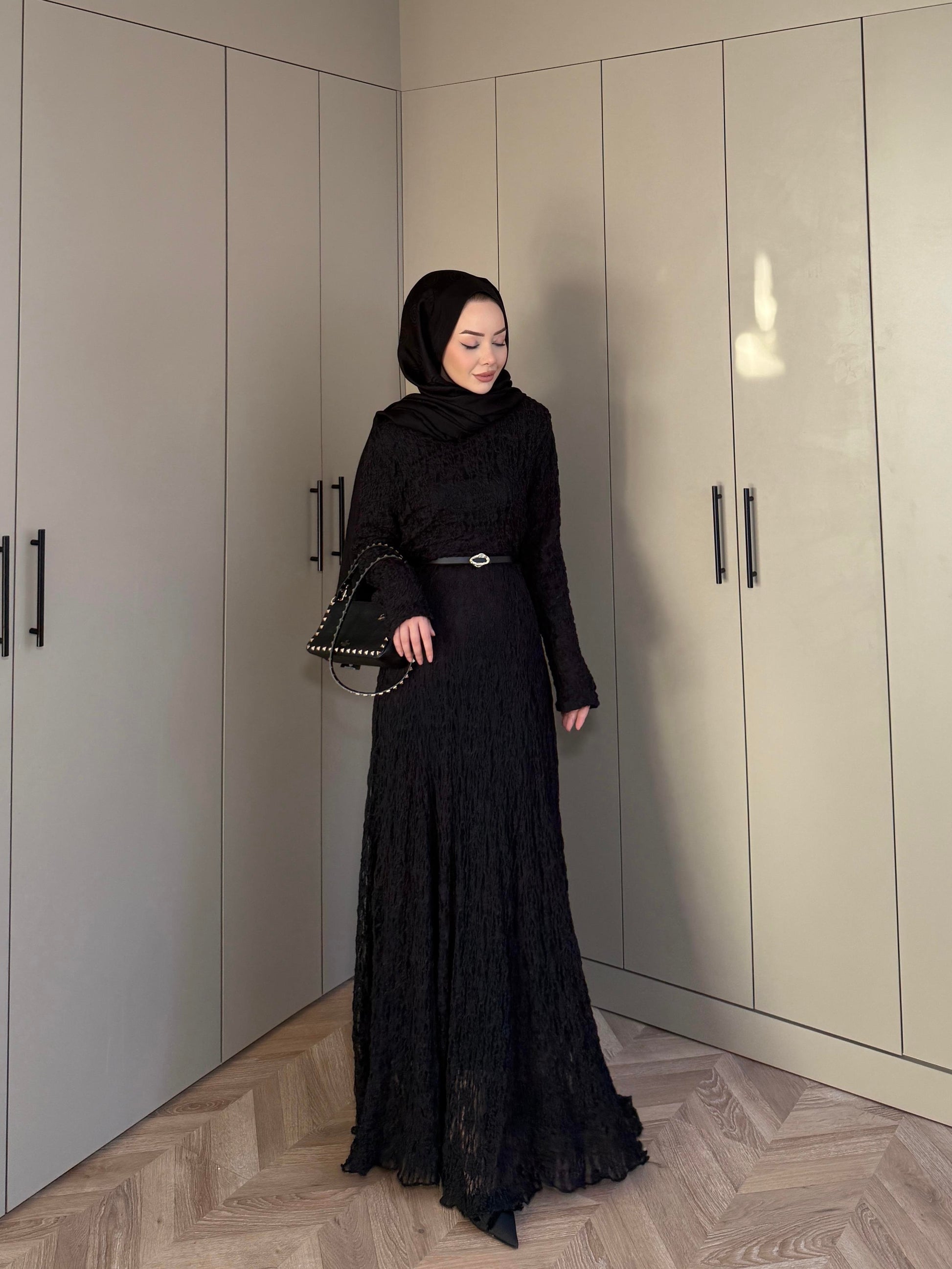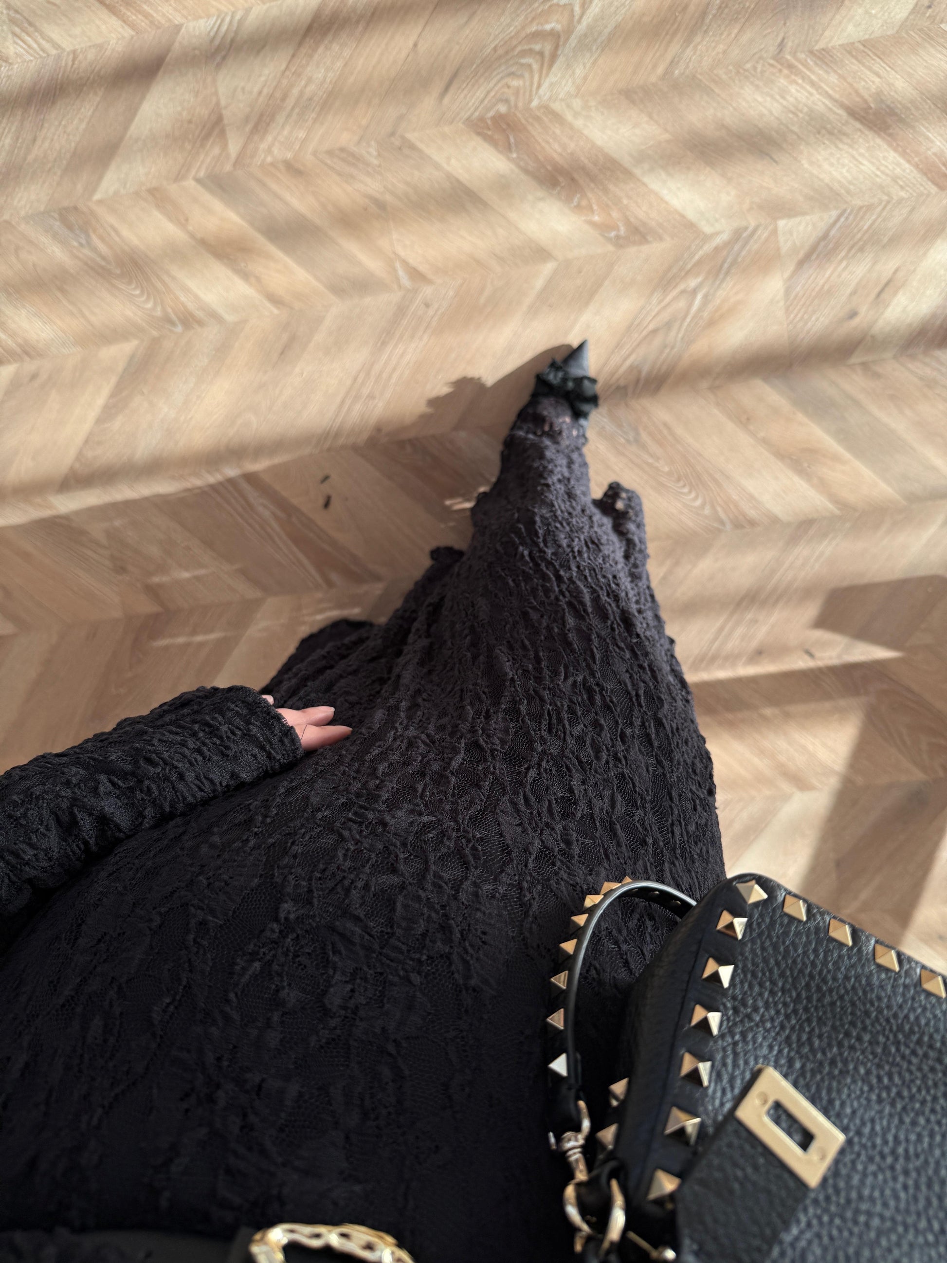 Black Lace Dress with Removable Belt