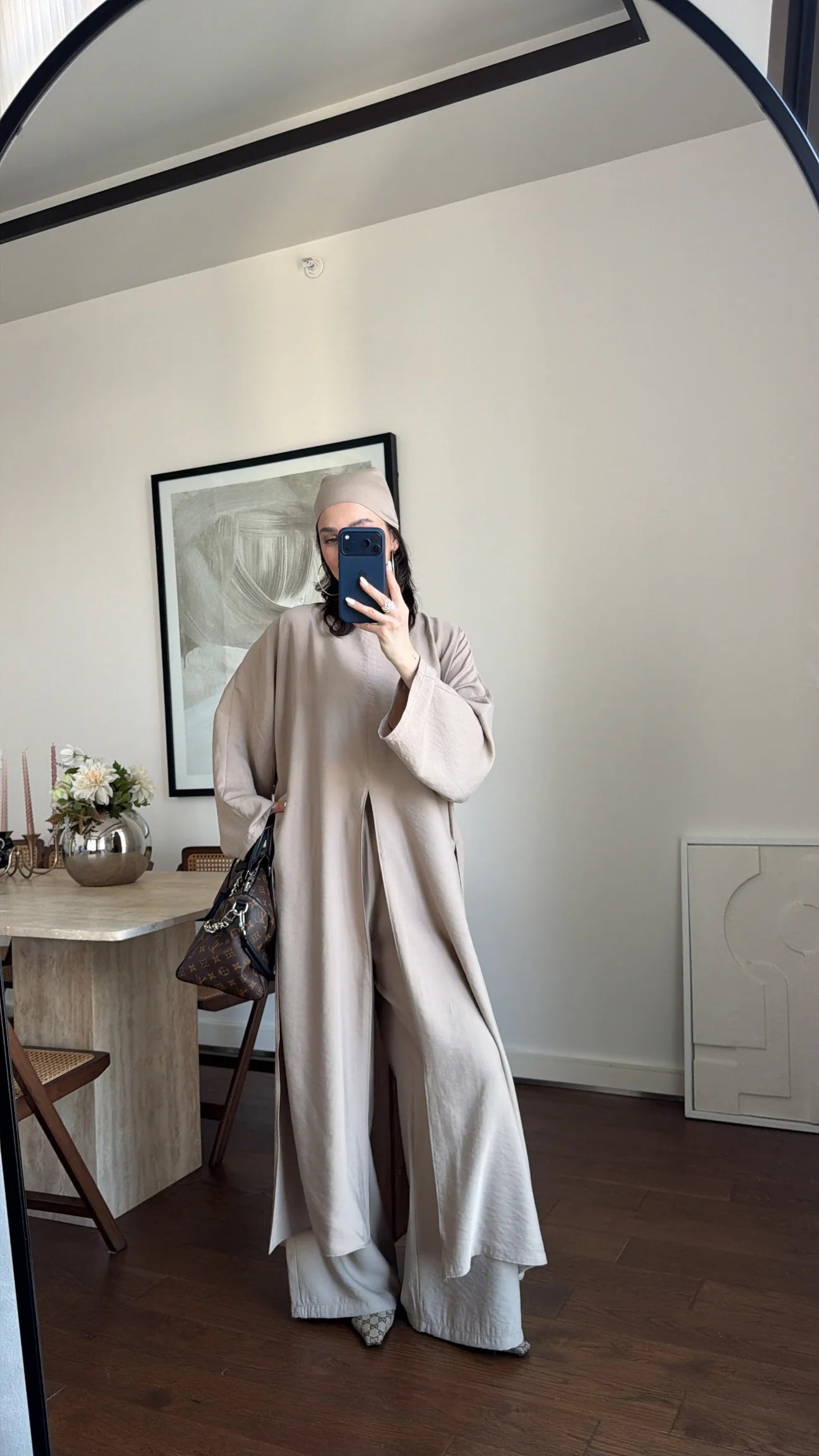 Effortlessly styled from head to toe — this three-piece co-ord set includes a side-slit tunic, matching trousers and a coordinating bandana for a complete, polished look straight out of the box. The relaxed true-to-size fit makes it an easy everyday choice that transitions seamlessly from casual outings to more dressed-up occasions.