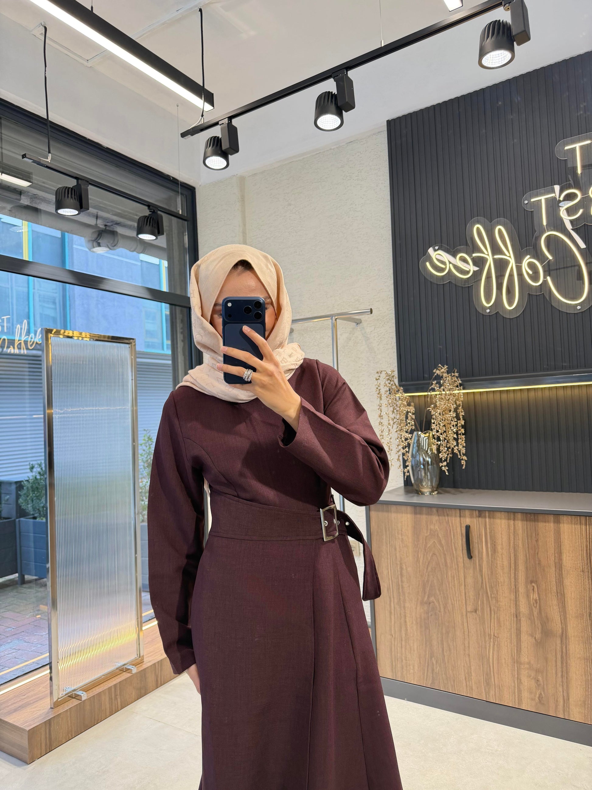 The Asymmetric Long Dress features a structured yet fluid fabric with a modern asymmetric cut. Designed with an adjustable waist belt, this long dress–jacket style offers a refined silhouette while remaining comfortable and versatile. Ideal for seasonal transitions, it combines contemporary design with effortless wearability.