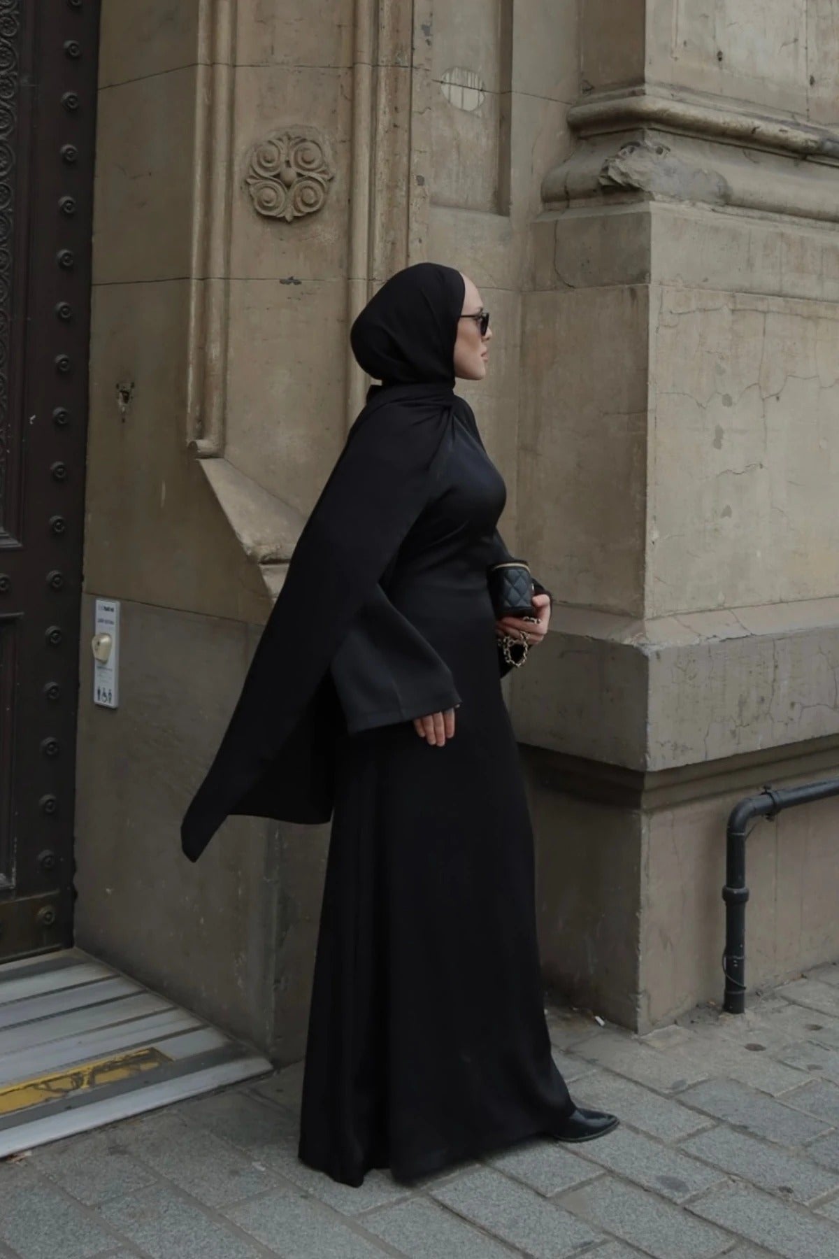 Black Satin Adjustable Waist Dress