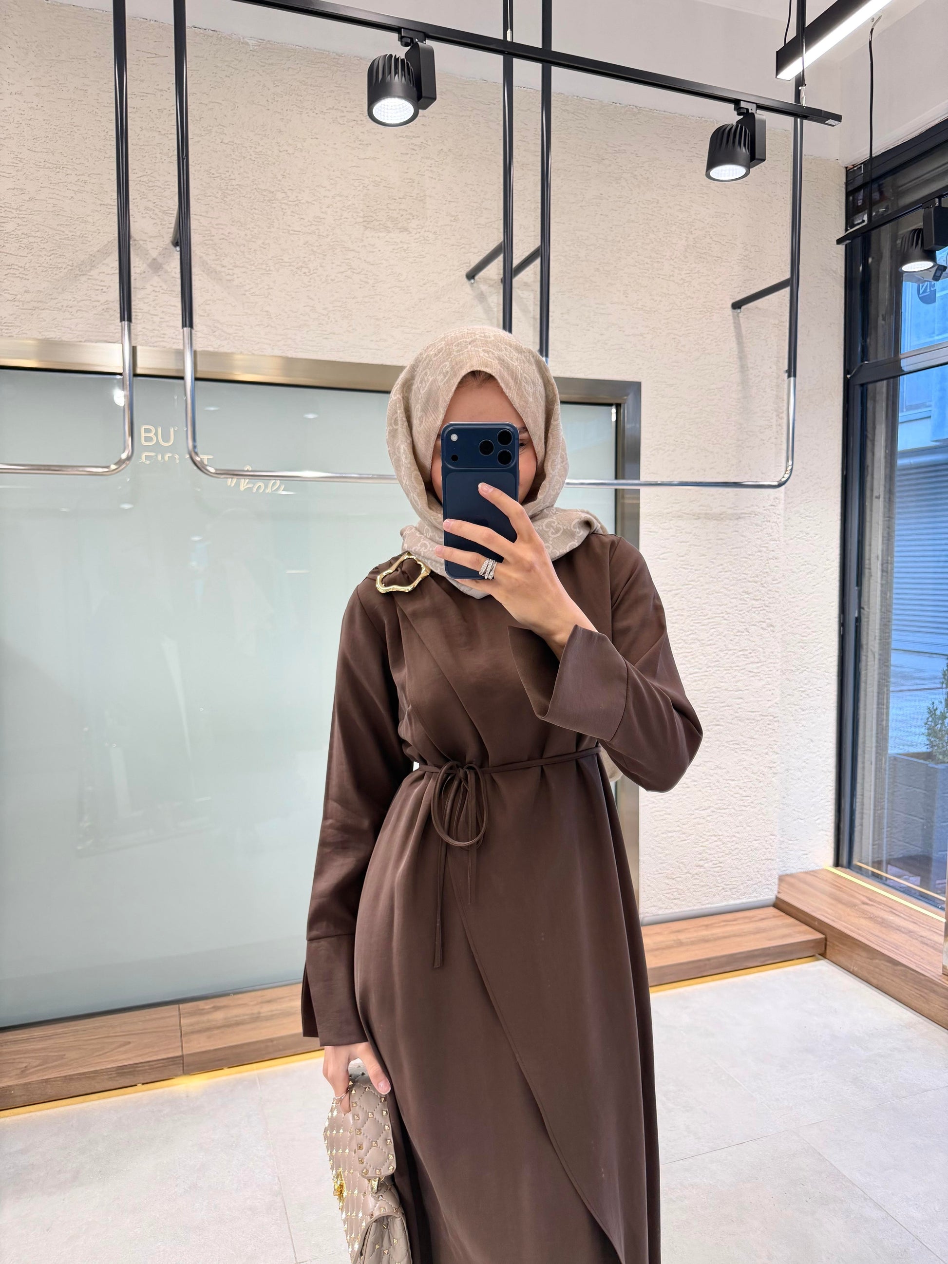 Buckle Detail Dress – Brown