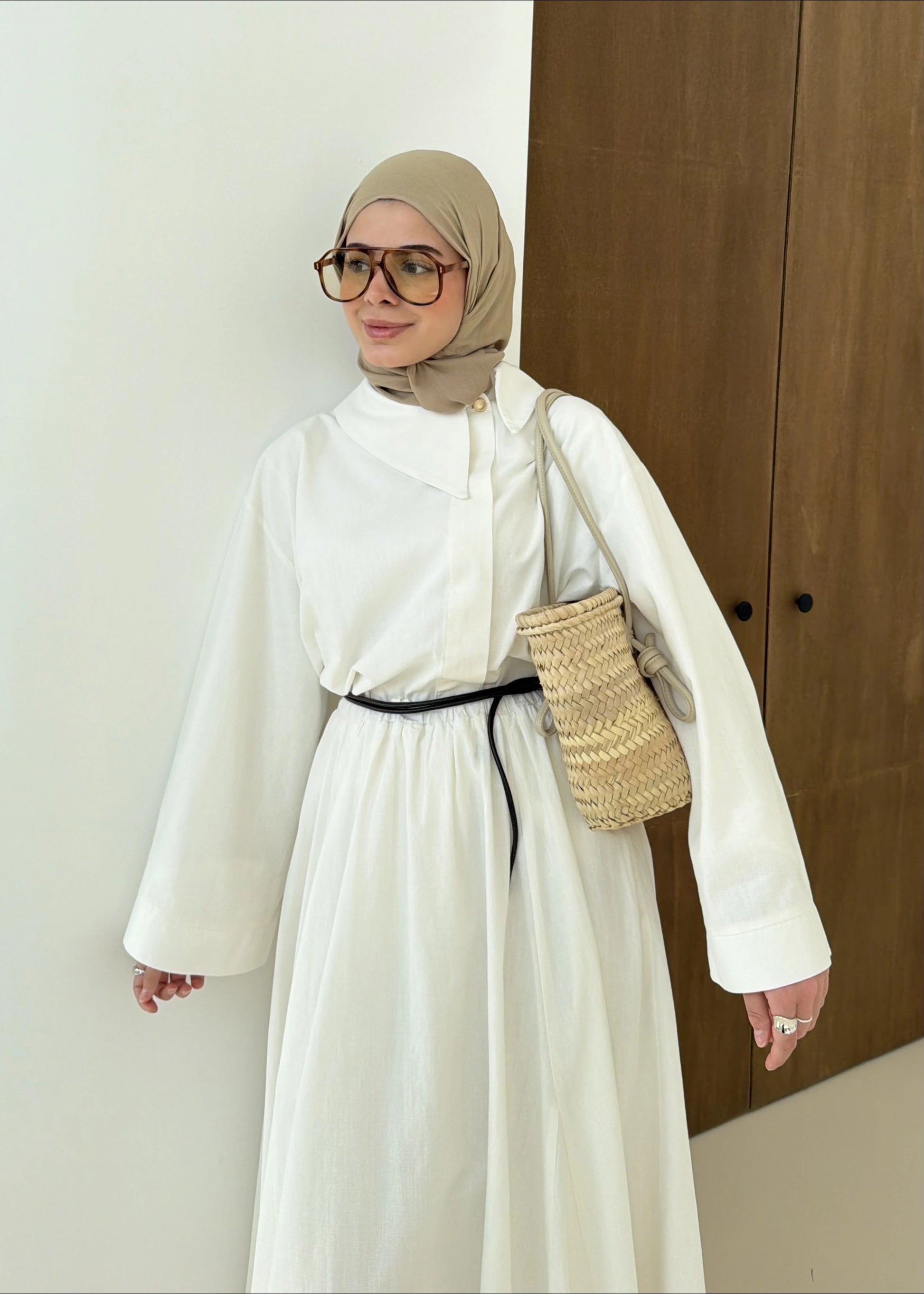 Embrace the breezy elegance of Mediterranean style with our White Single Button Linen Set. Designed for the woman who seeks a polished look without compromising on comfort, this two-piece suit is crafted from a high-quality linen blend that ensures maximum breathability during the warmest months.