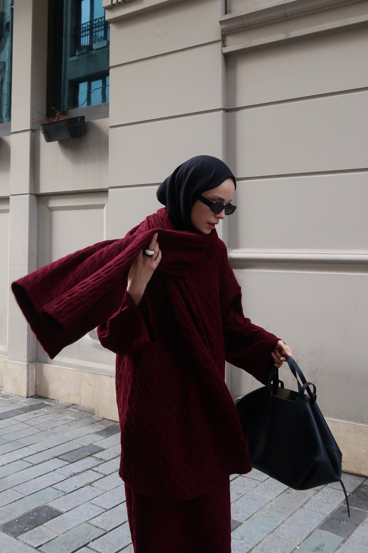 This elegant two-piece knit set features a relaxed top and matching straight-fit pants. The soft-touch knit fabric feels cozy on the skin while keeping a clean, structured look. Ideal for both casual days and refined evenings, it combines comfort, versatility, and effortless elegance.