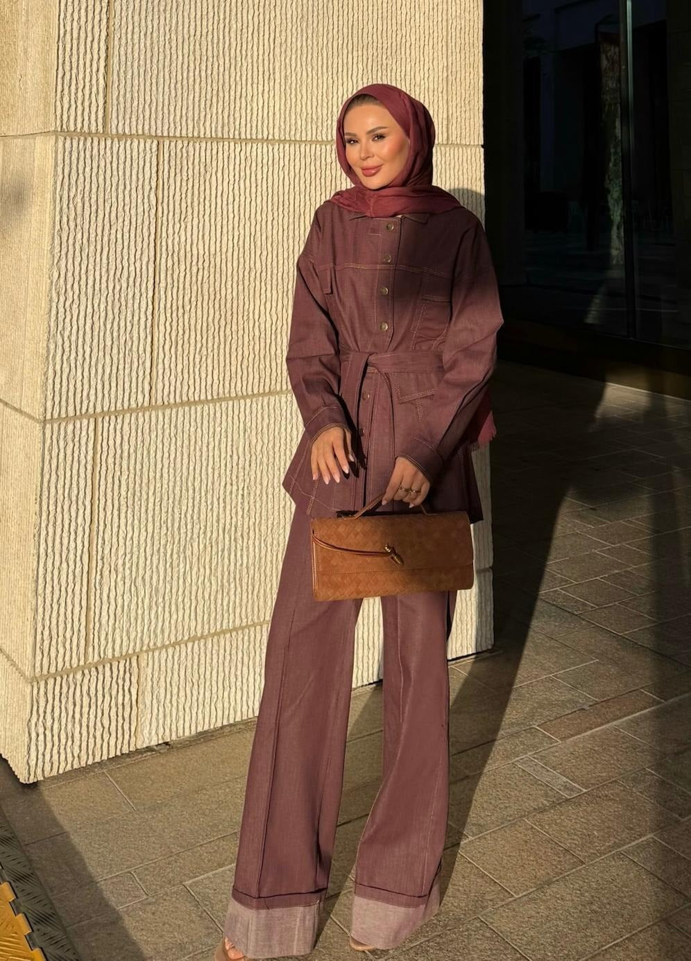 Manche Denim Set – Burgundy