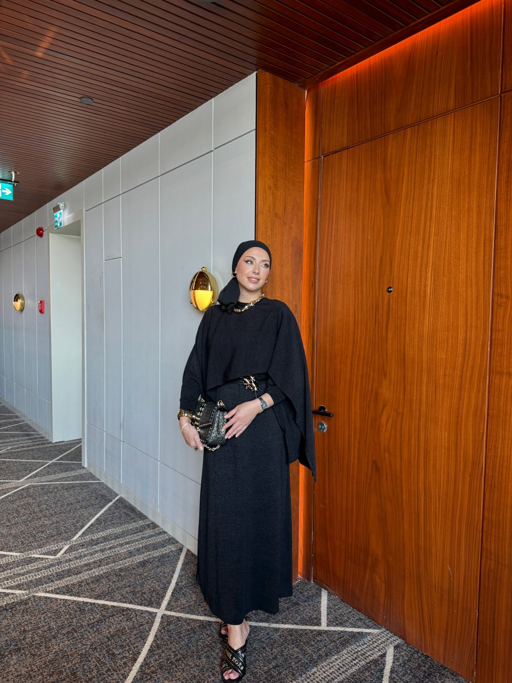 This elegant two-piece set is made from premium knit fabric. The sleeveless dress features a single-button closure at the back neckline and comes with a removable belt for an adjustable fit. The matching cardigan is designed with batwing sleeves and dropped shoulders, offering a relaxed yet refined look.