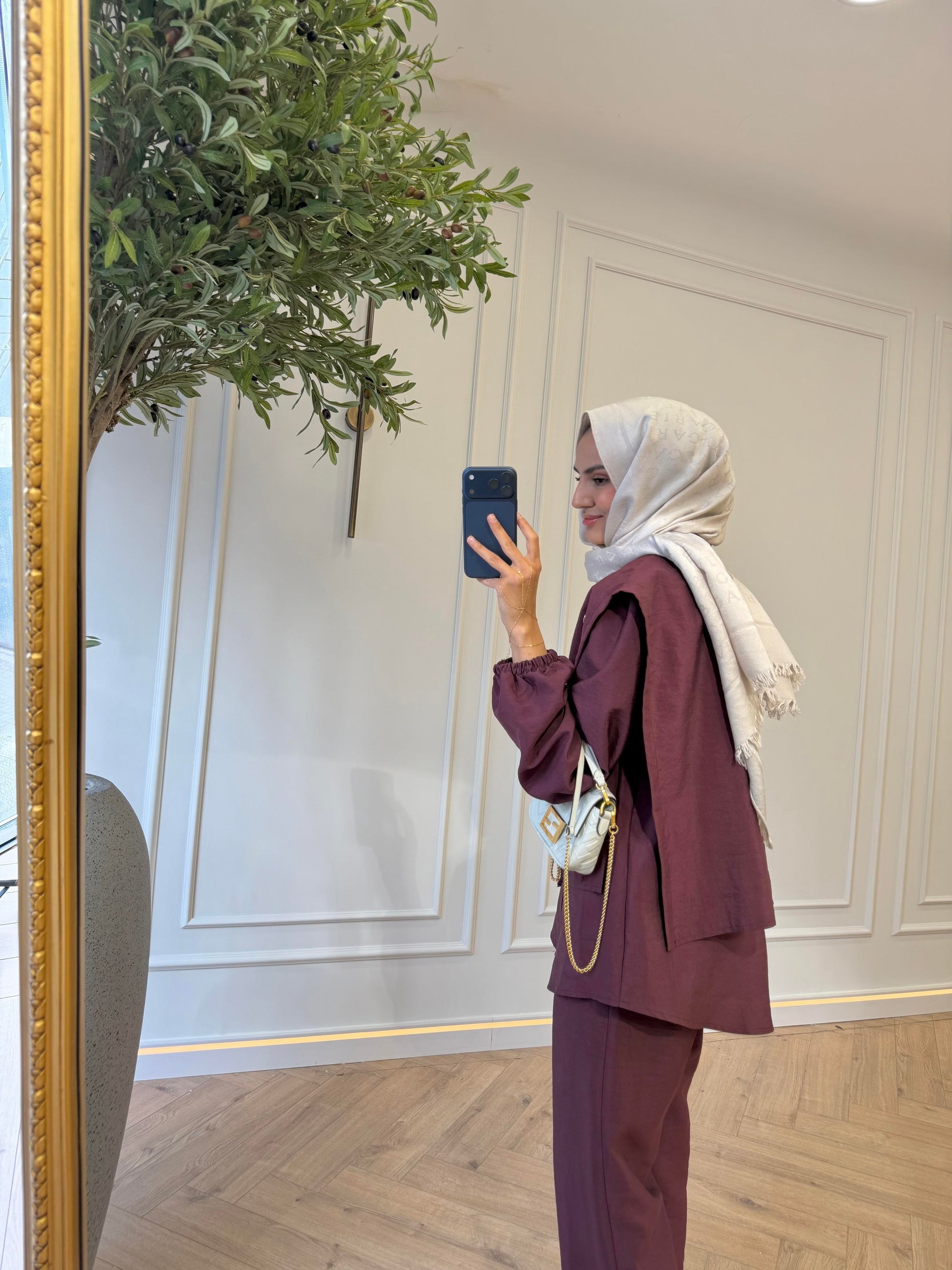A contemporary two-piece outfit designed for effortless elegance. This set features a relaxed-fit tunic top and matching straight-cut trousers crafted from smooth woven fabric. The clean silhouette and minimal detailing make it ideal for both casual and semi-formal occasions. Lightweight and comfortable, it transitions easily across seasons and pairs well with heels or flats.