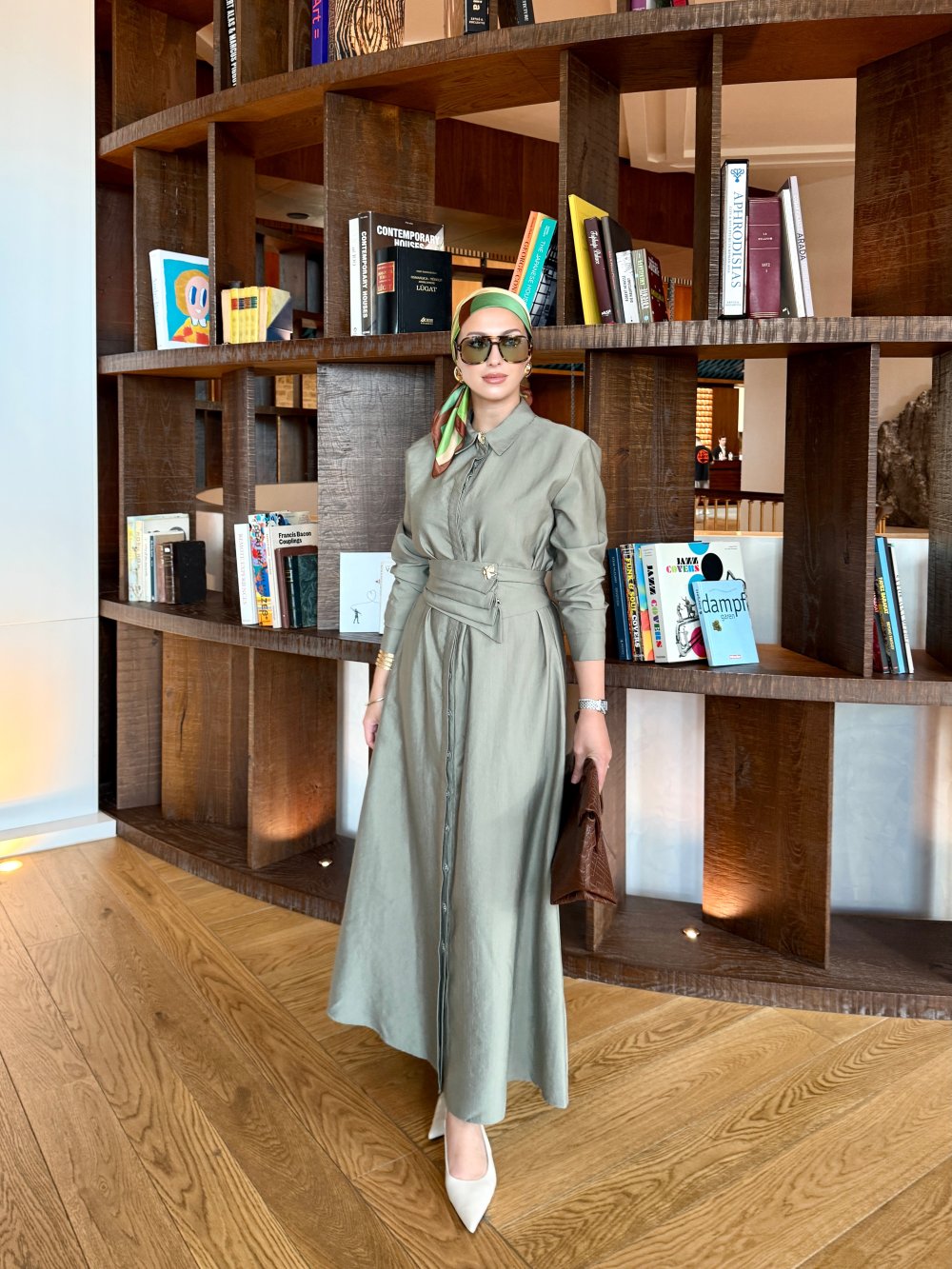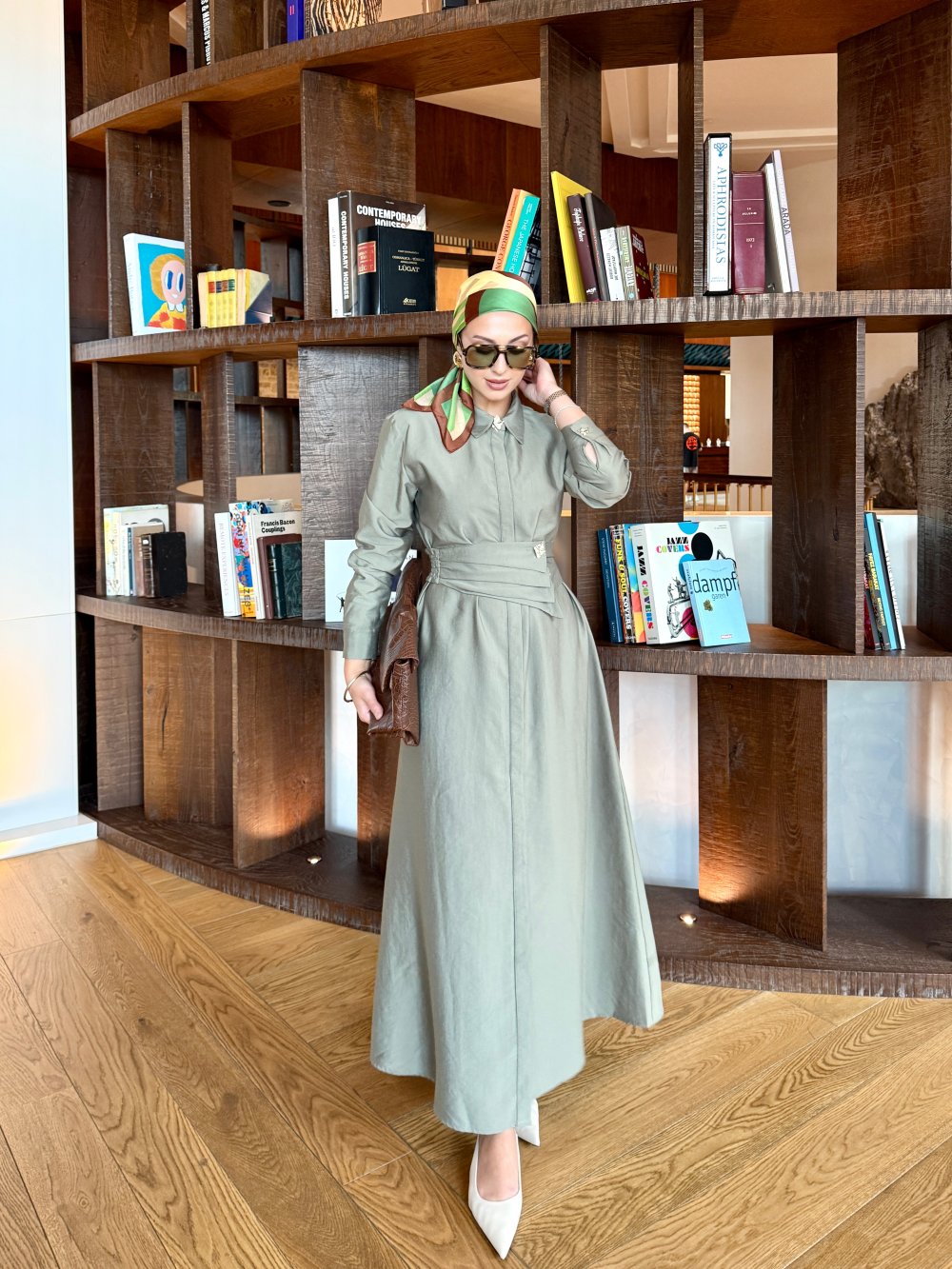 Buckle Detailed Chic Dress Khaki
