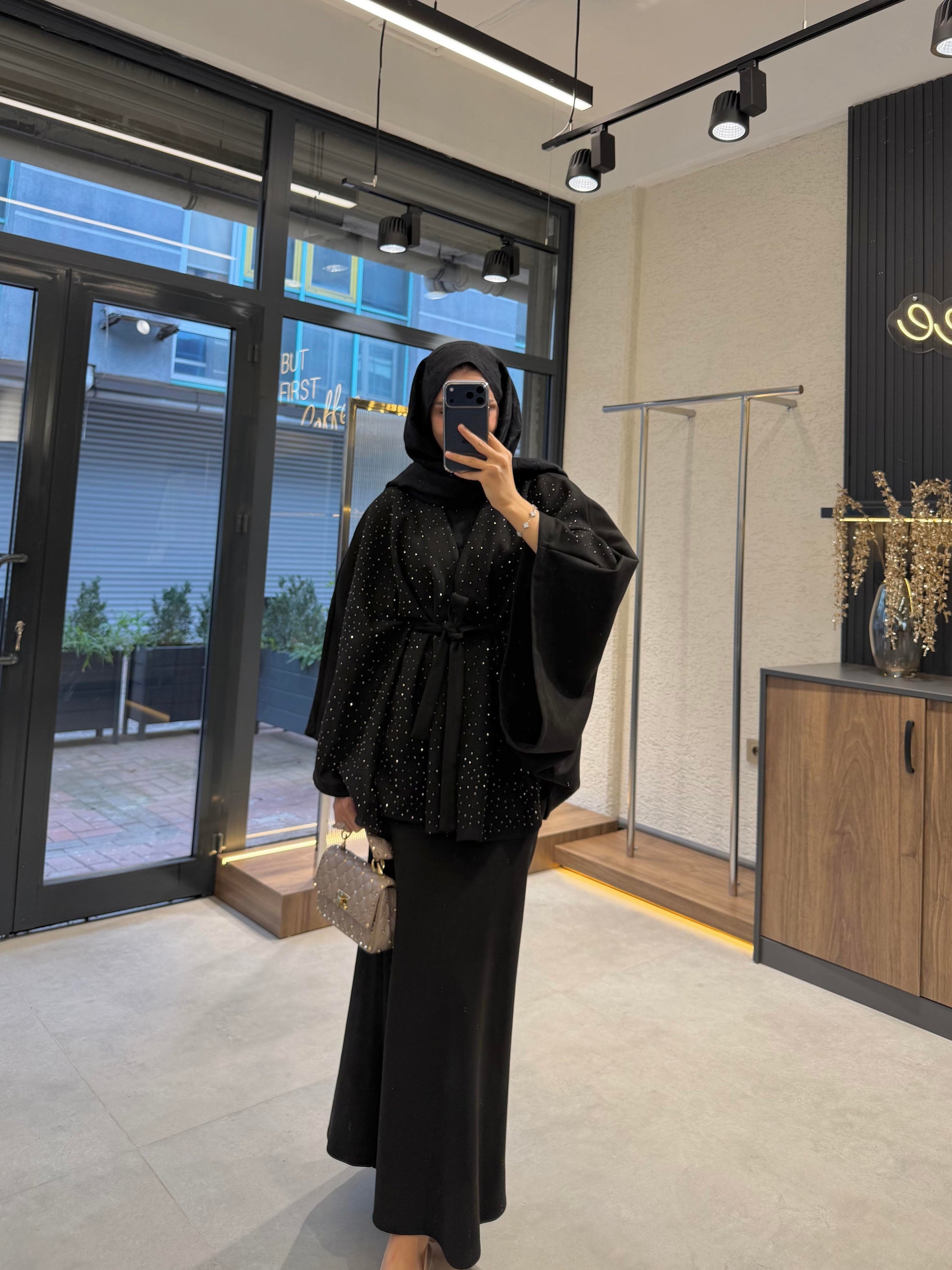 - Flowing batwing sleeves create a graceful and relaxed silhouette.