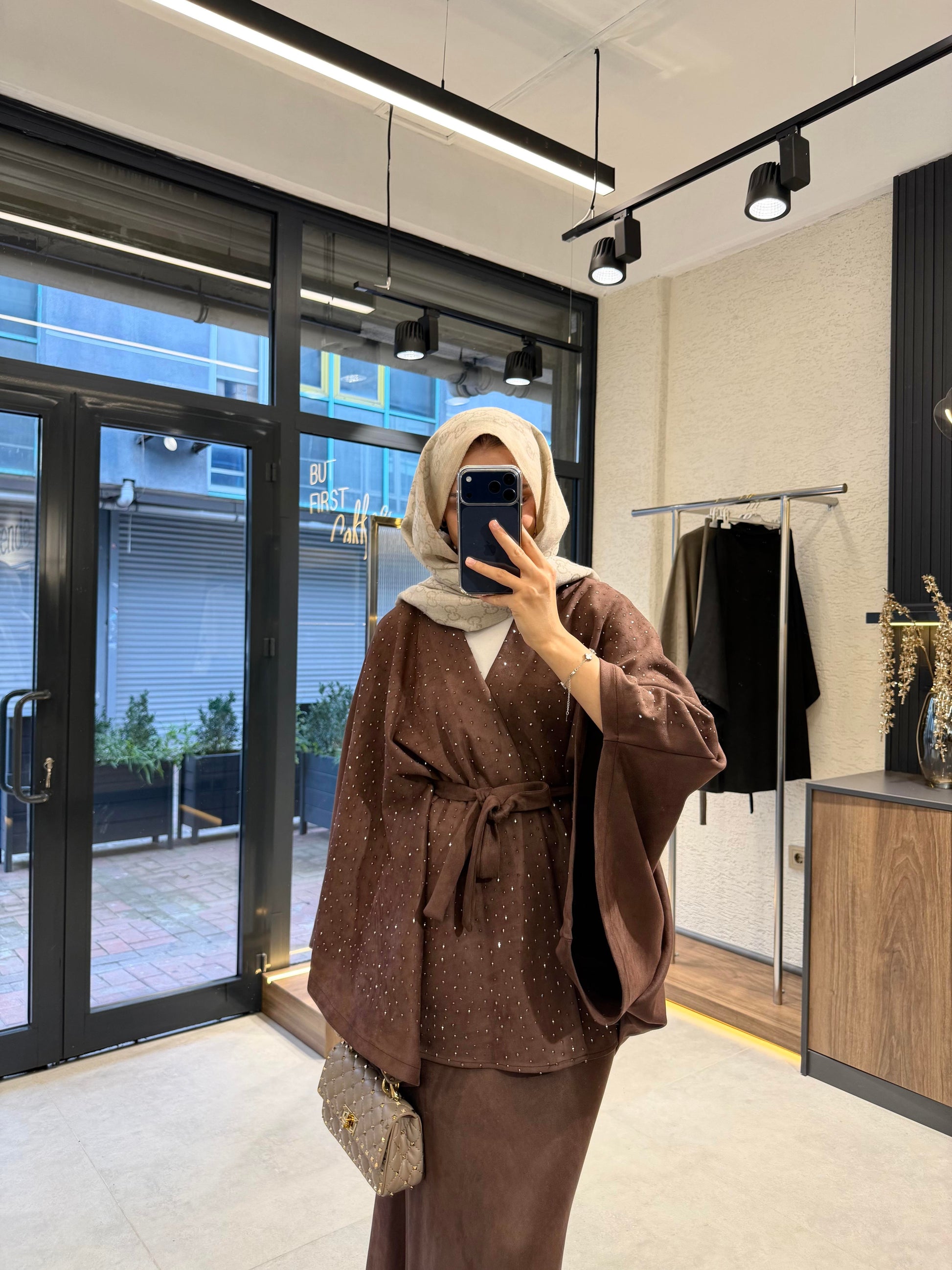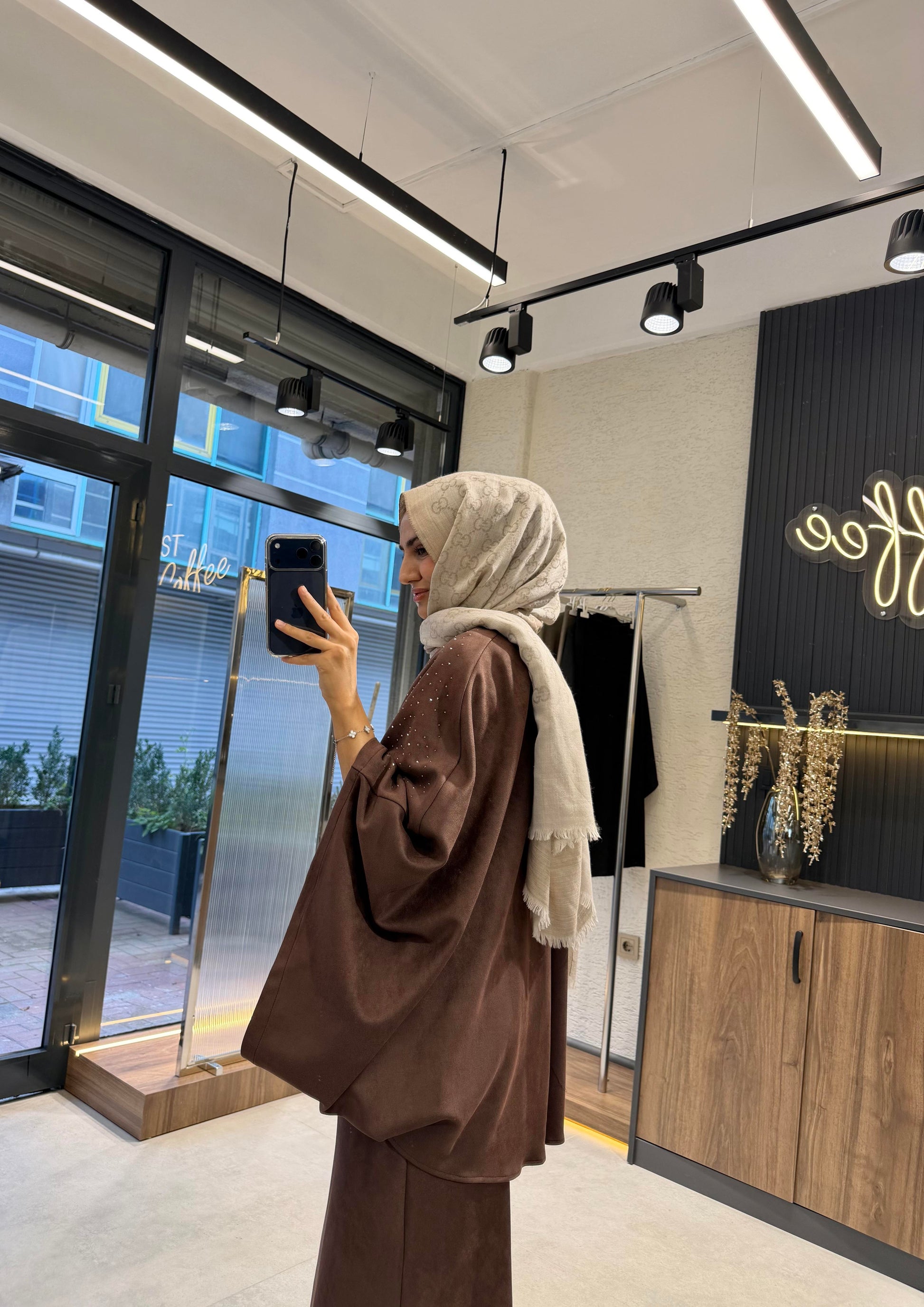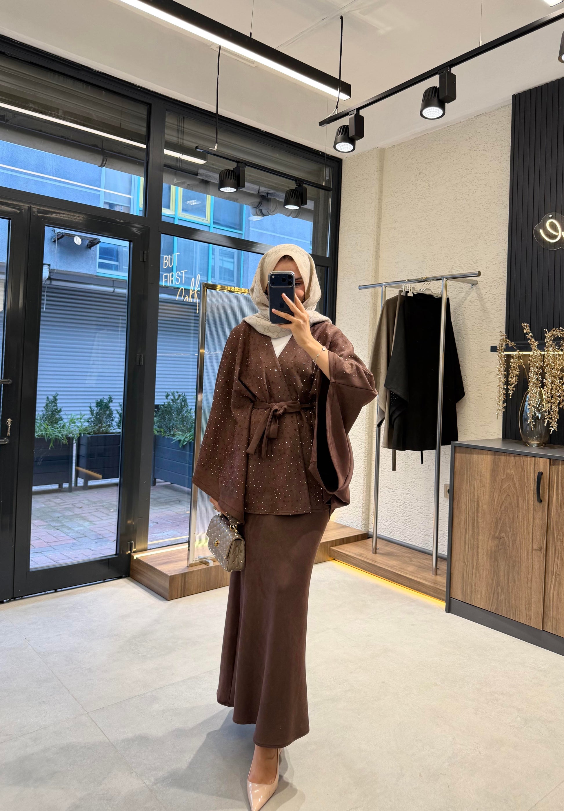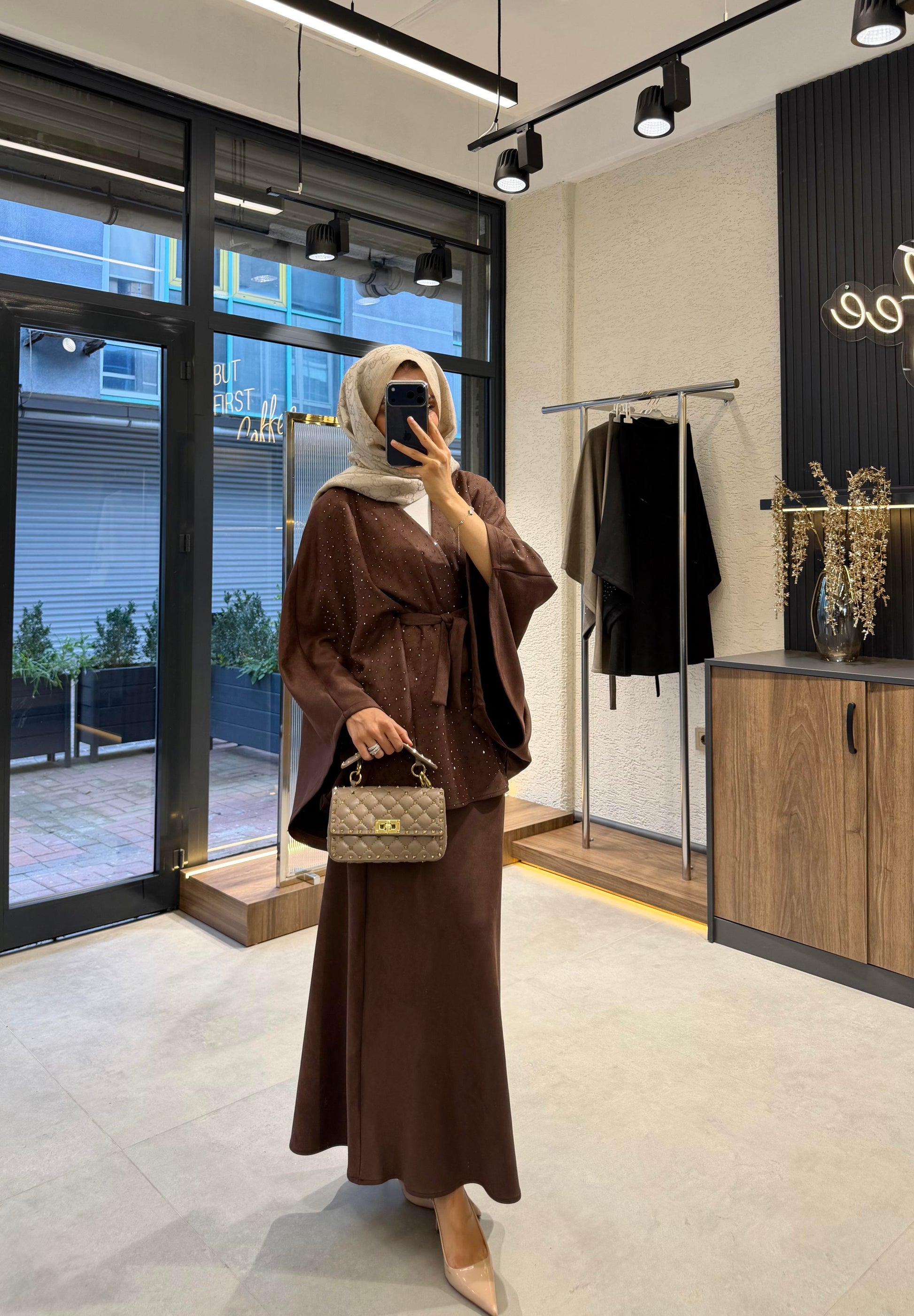 Elevate your modest wardrobe with the Sandy Luxe Belted Two-Piece Set in beige — a beautifully coordinated outfit that’s both elegant and comfortable.