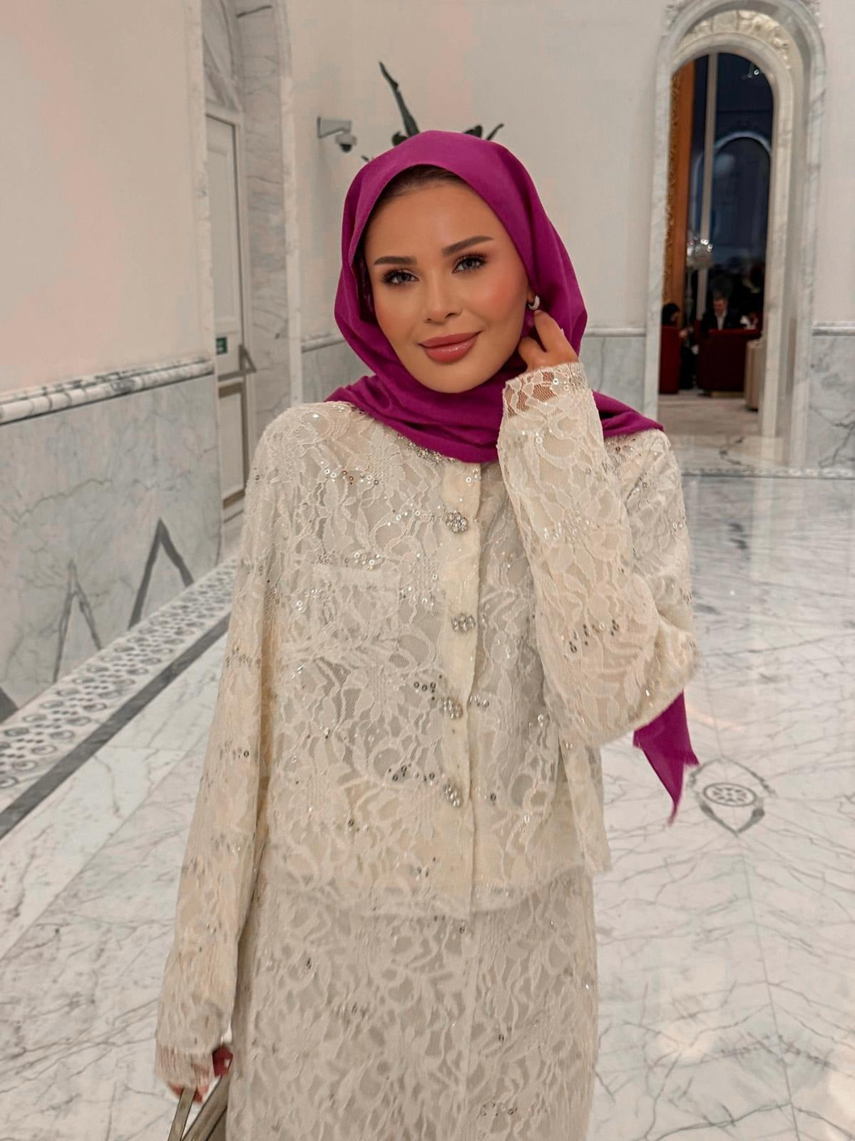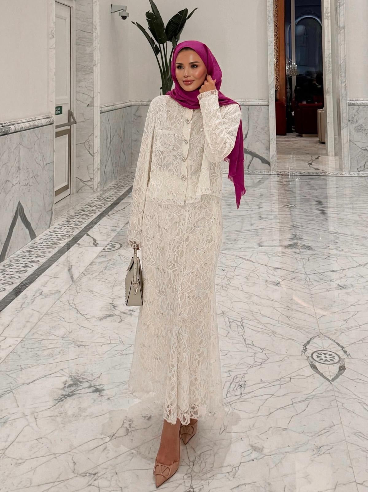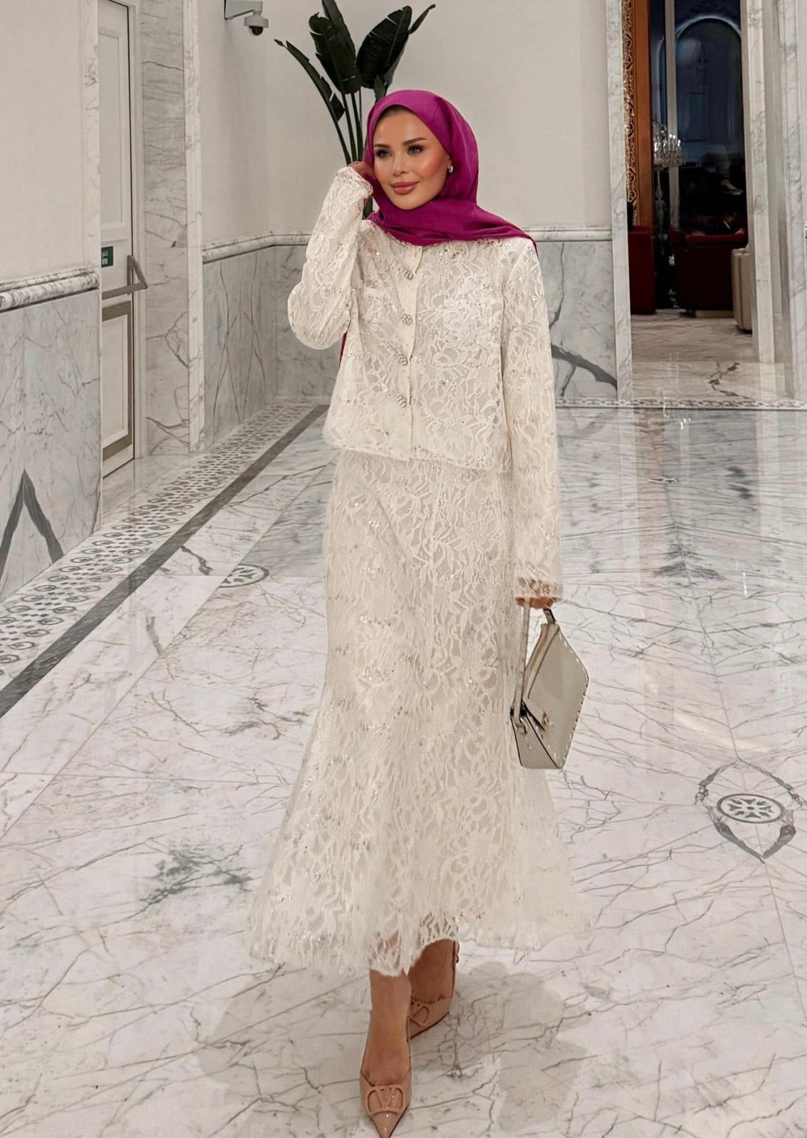 Lace Shimmer Skirt Set – Ecrou
