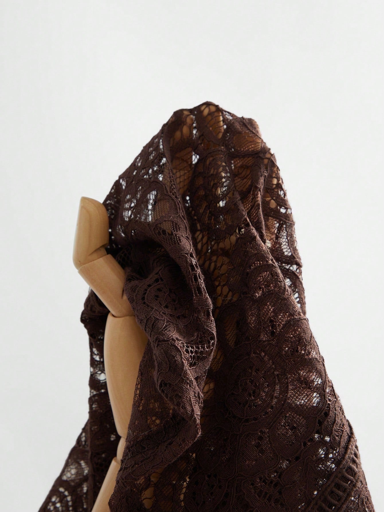 Long‑Sleeve Rose Lace Maxi Dress – Brown