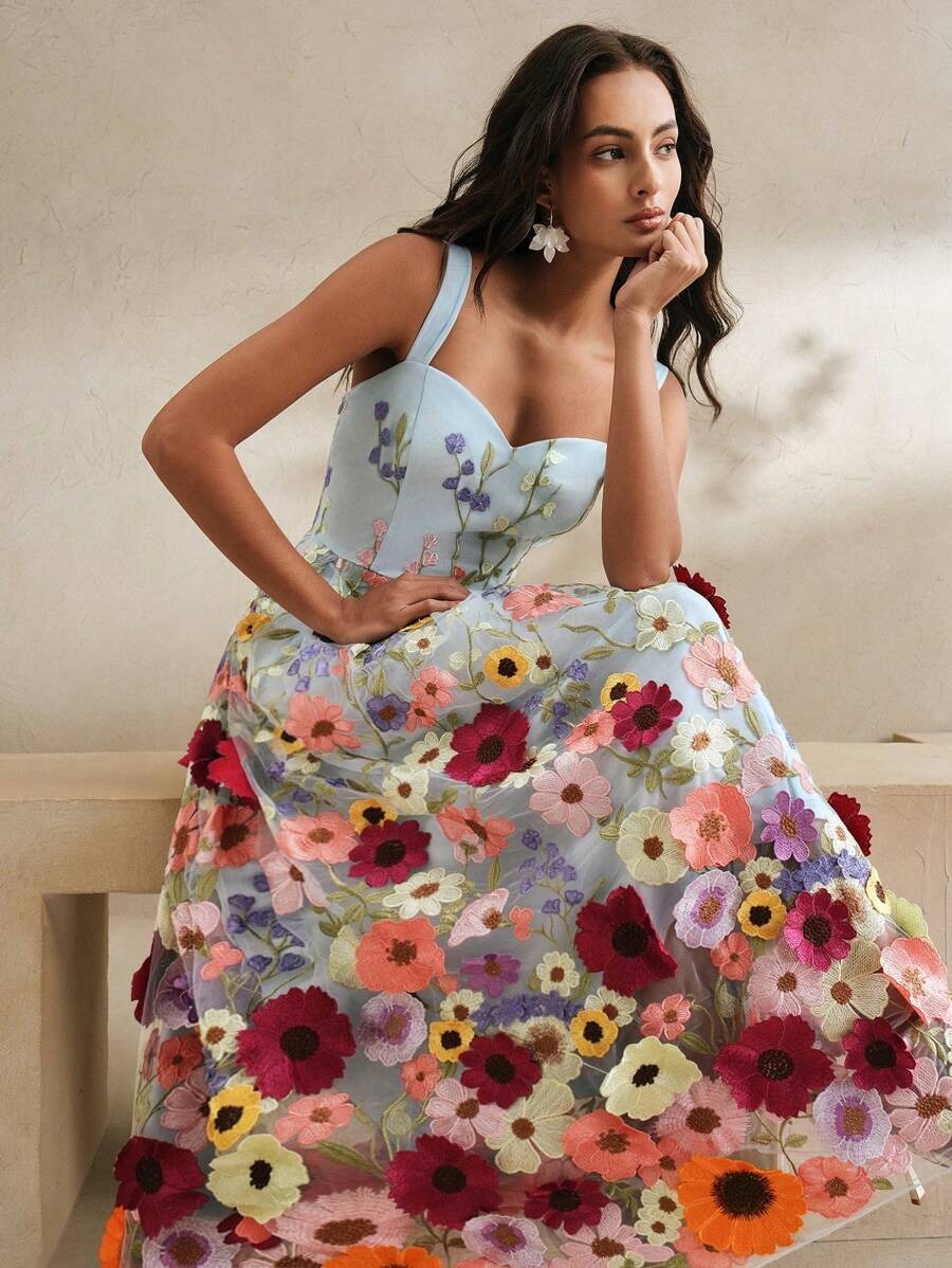 Elegant 3D Floral Embroidered Slip Maxi Dress