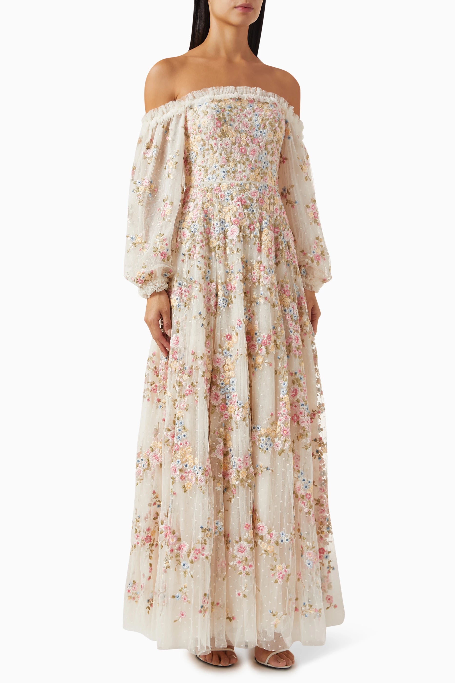 Needle & Thread Lunaria Wreath Off-shoulder Gown