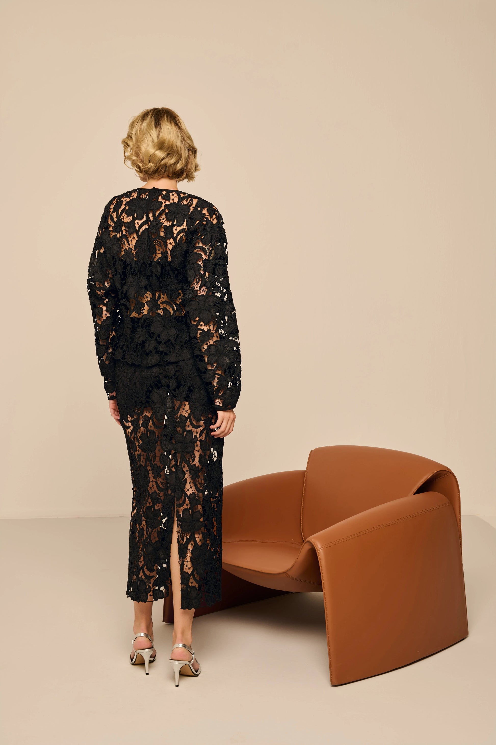 Sophisticated yet daring — the Premium Lace Midi Skirt combines delicate craftsmanship with a bold, feminine silhouette.