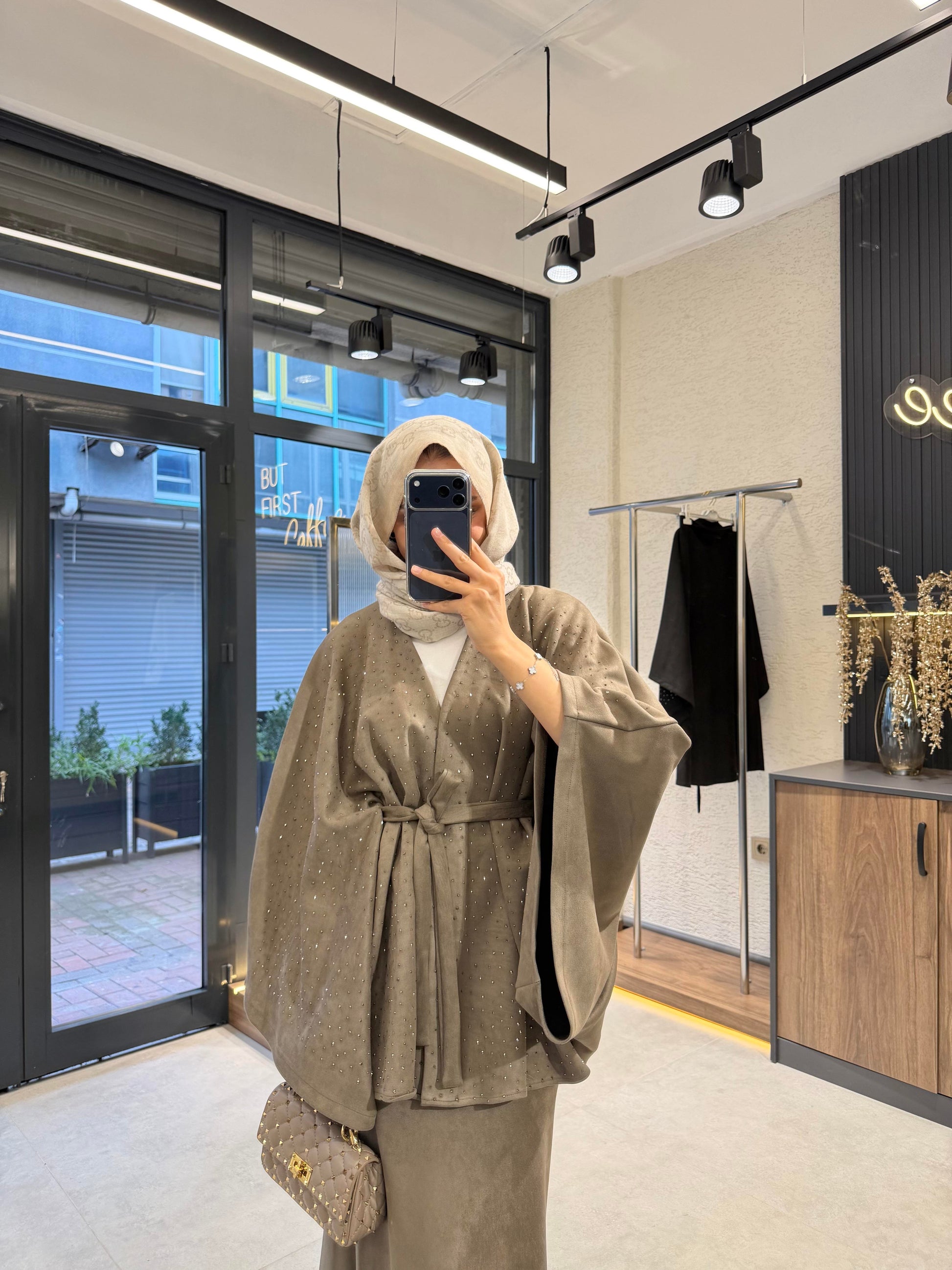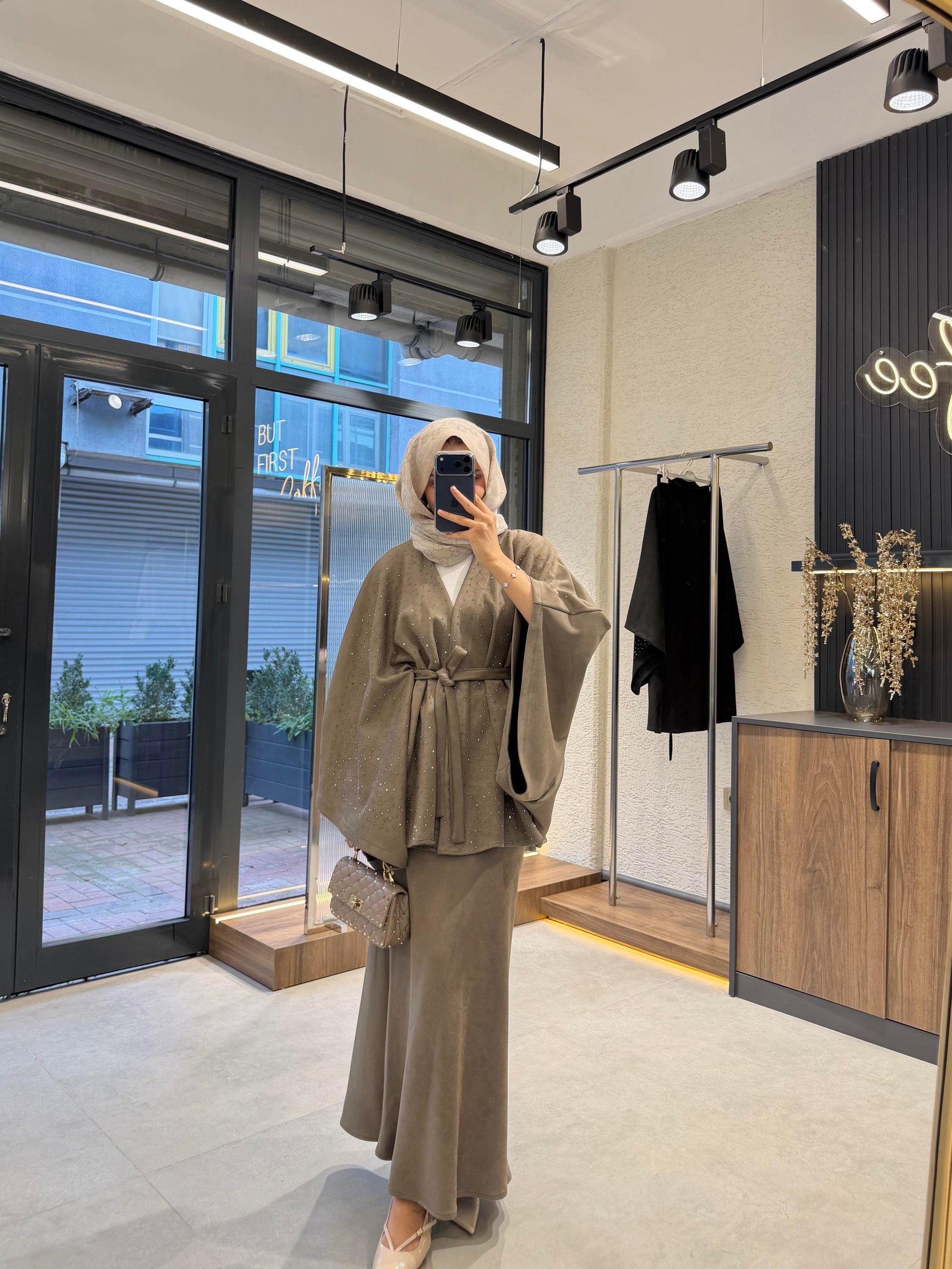 Elevate your modest wardrobe with the Sandy Luxe Belted Two-Piece Set in beige — a beautifully coordinated outfit that’s both elegant and comfortable.