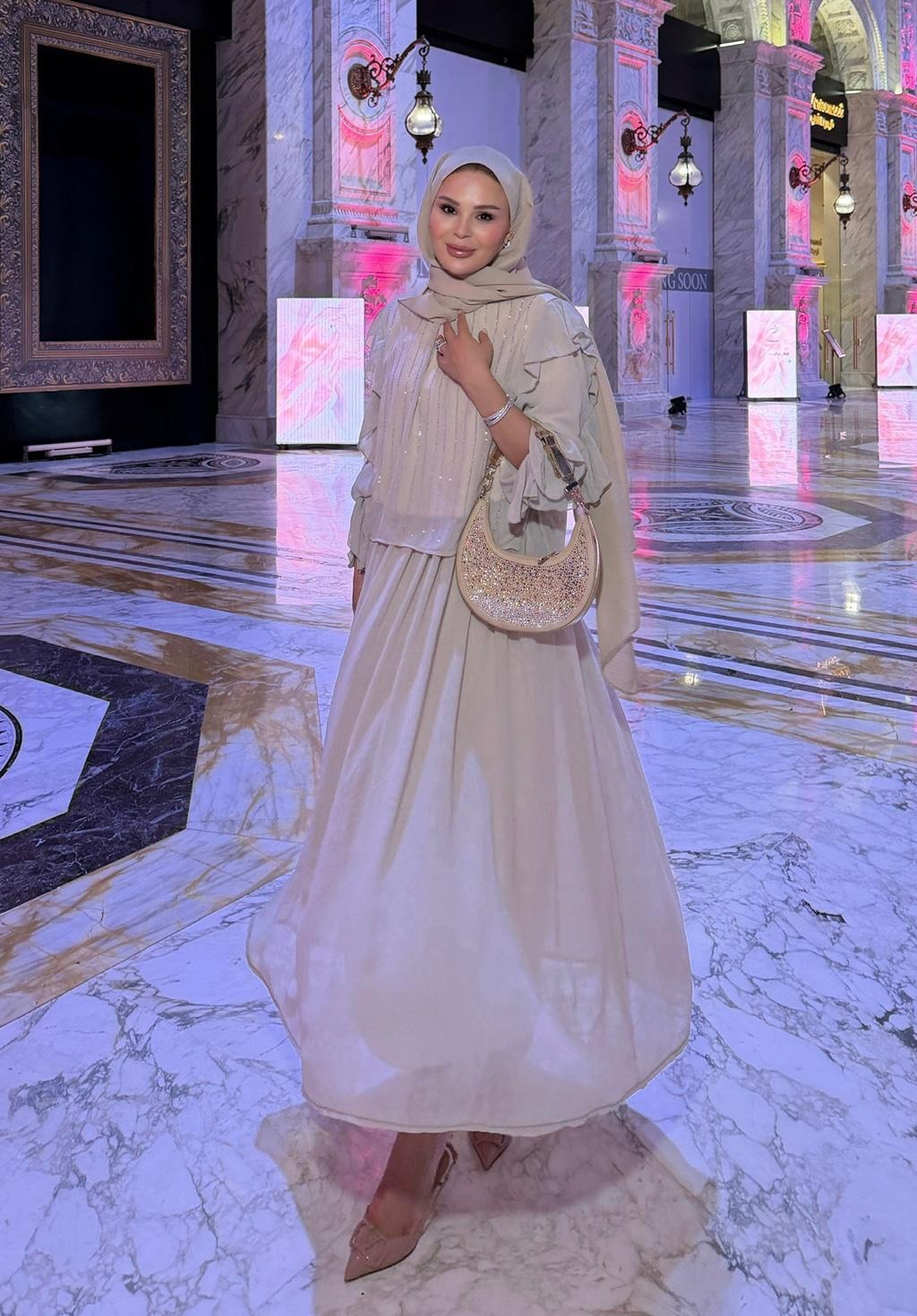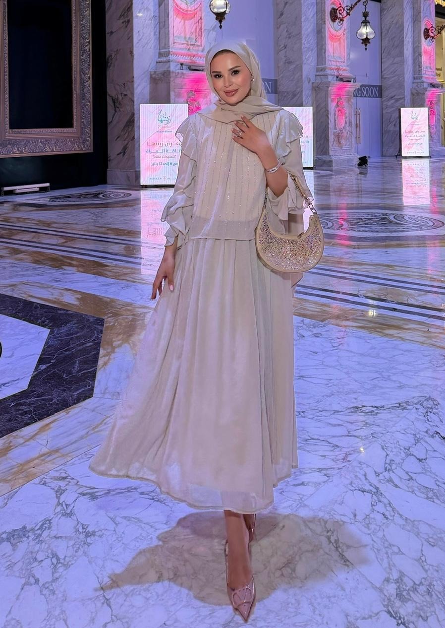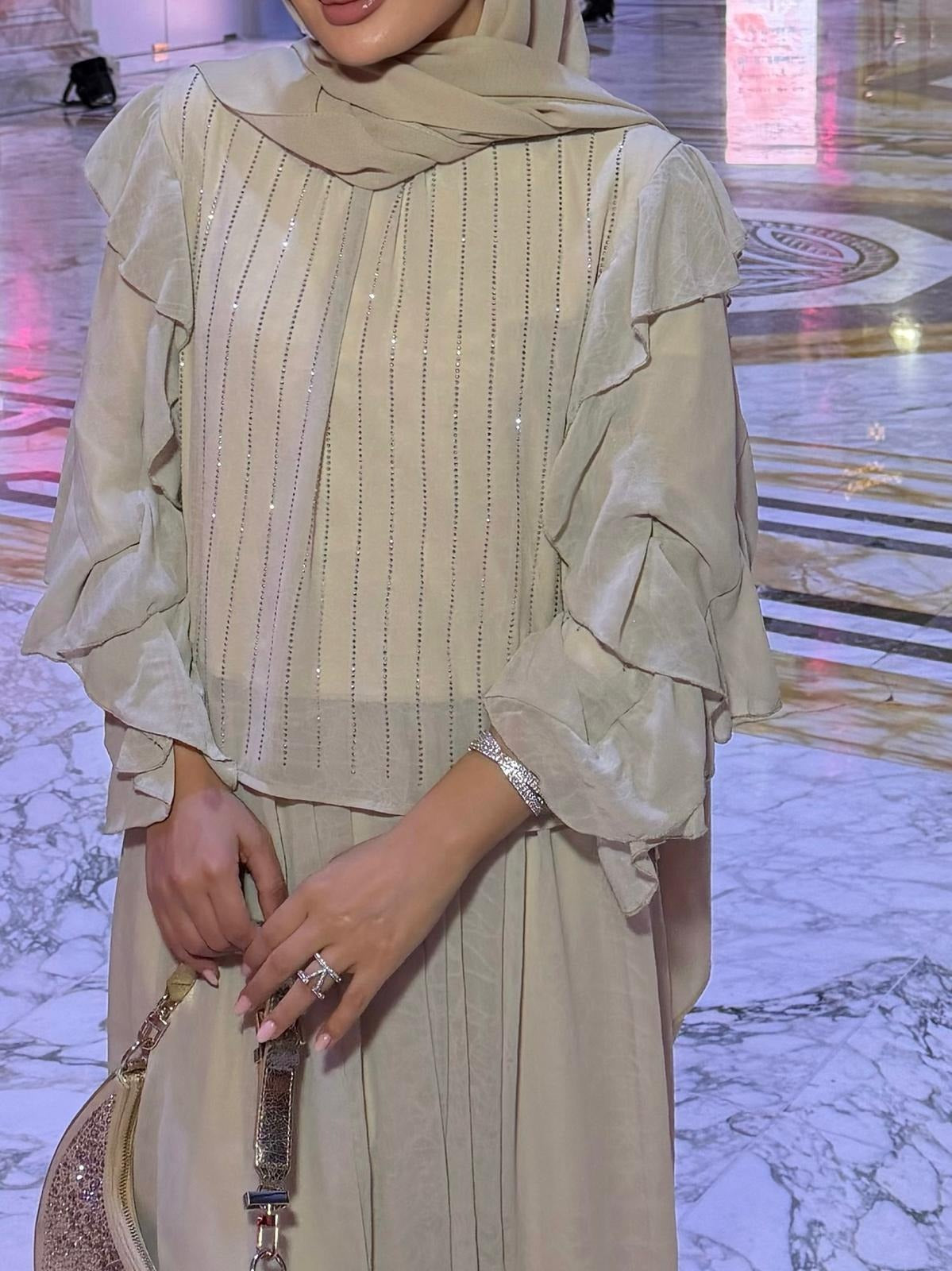 Mia Shimmer Skirt Set – Beige