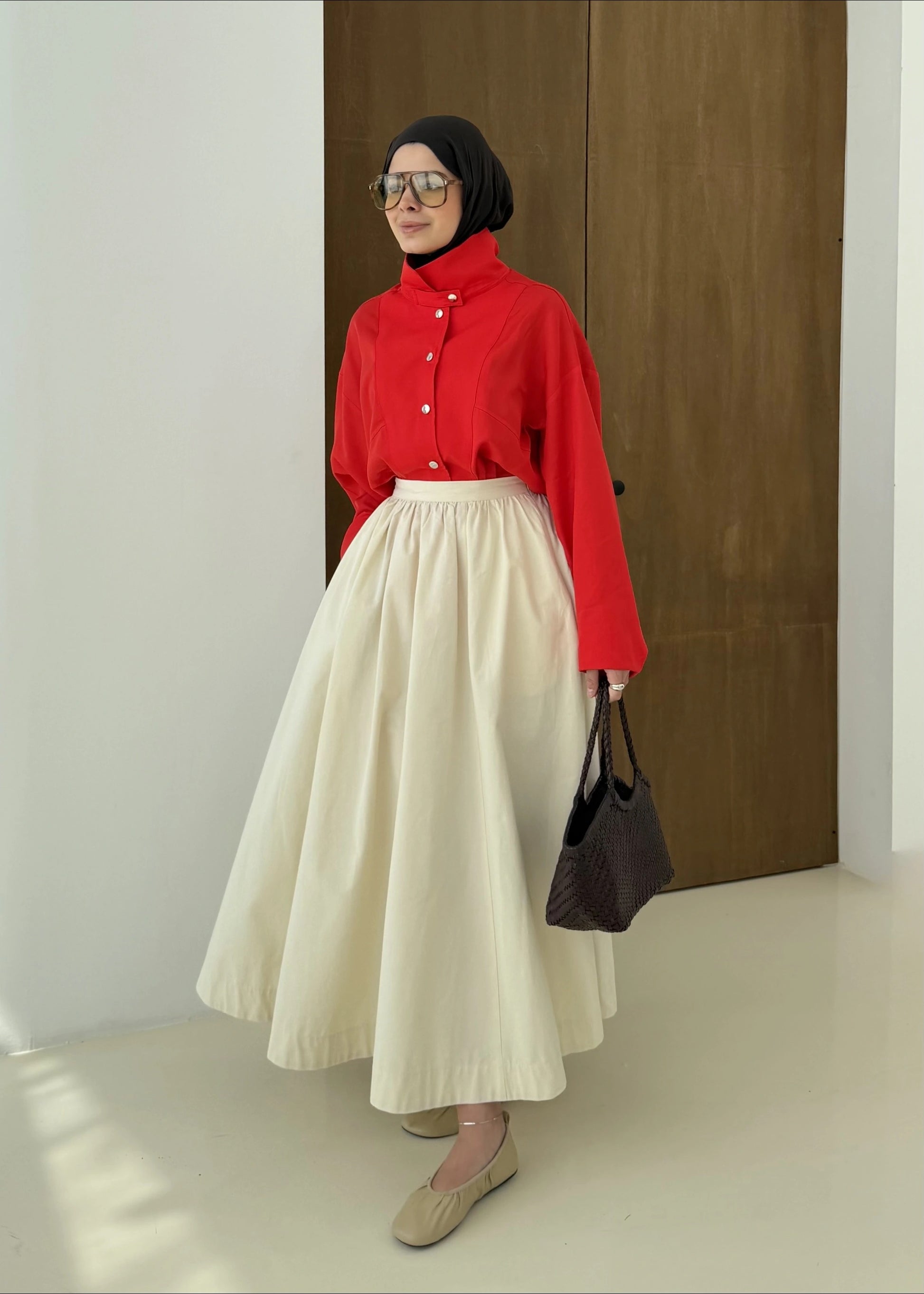 Elevate your daily wardrobe with our Voluminous Vanilla Skirt, designed to blend timeless style with modern comfort. Crafted from a premium 98% cotton blend with a hint of Lycra, this skirt offers a breathable, soft-touch feel with the perfect amount of stretch for all-day wear.