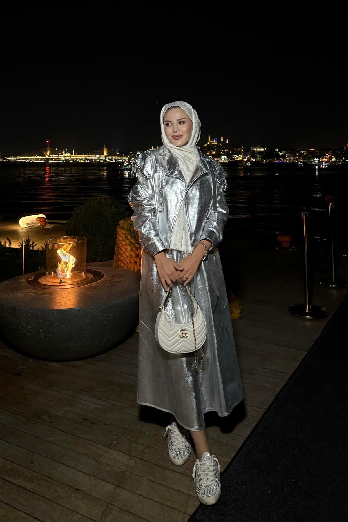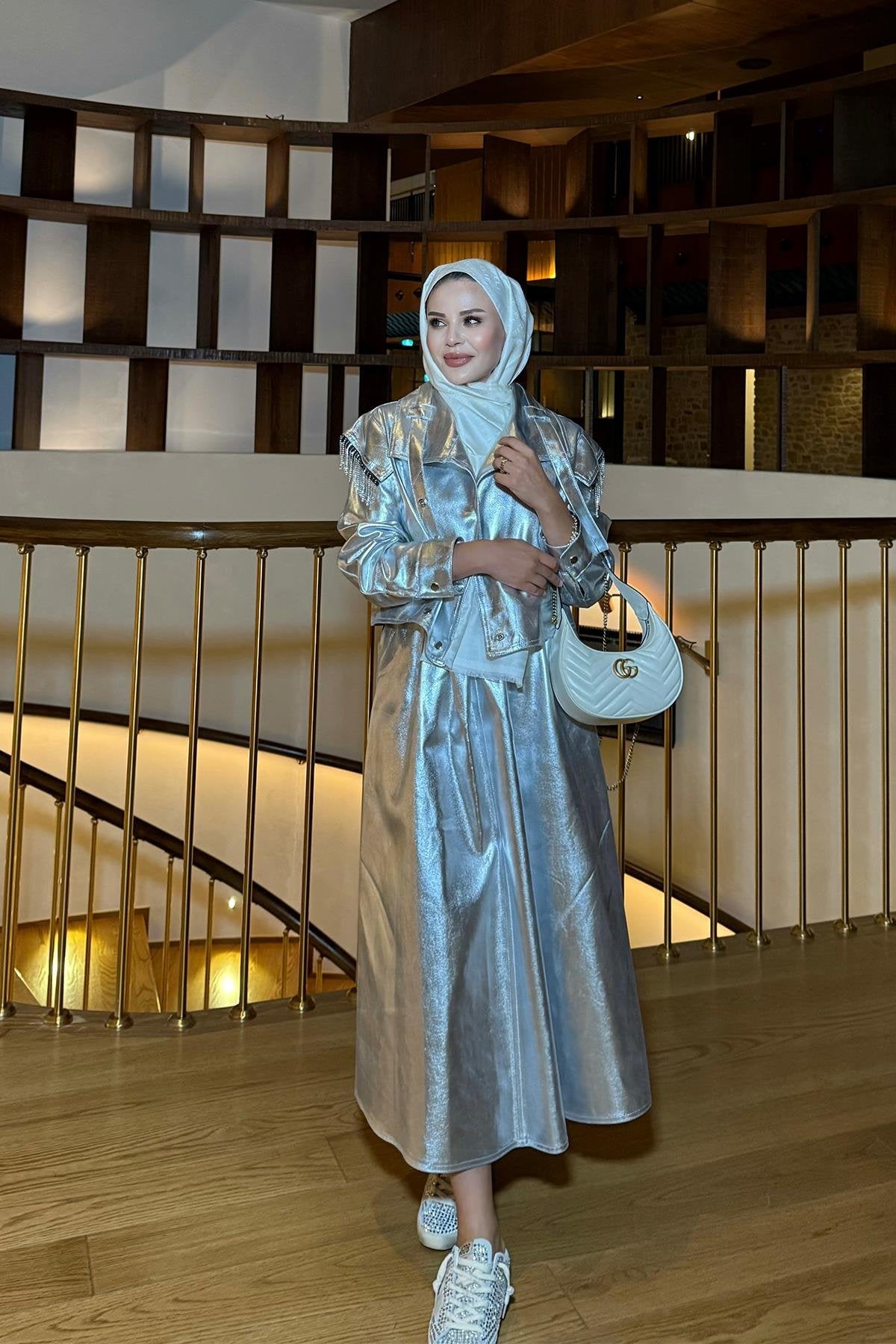 Crafted from premium gabardine, the set offers structure without sacrificing comfort. Perfect for evening events, special occasions, or whenever you want to make a statement, this set embodies modern modest fashion with luxurious detailing.