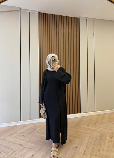 Black Knit Kimono Set with Inner Dress