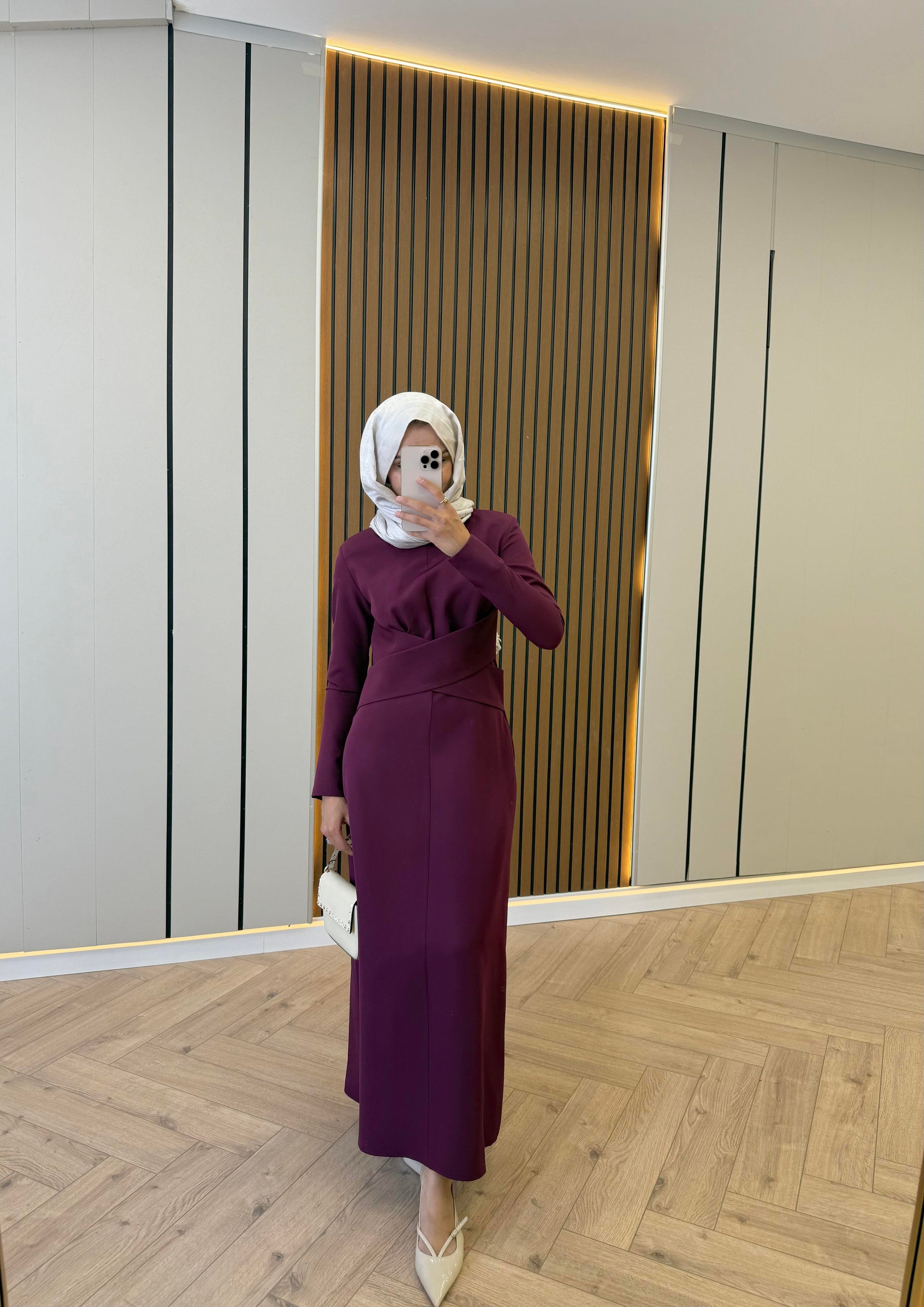 Cross-Belt Detail Dress – Plum