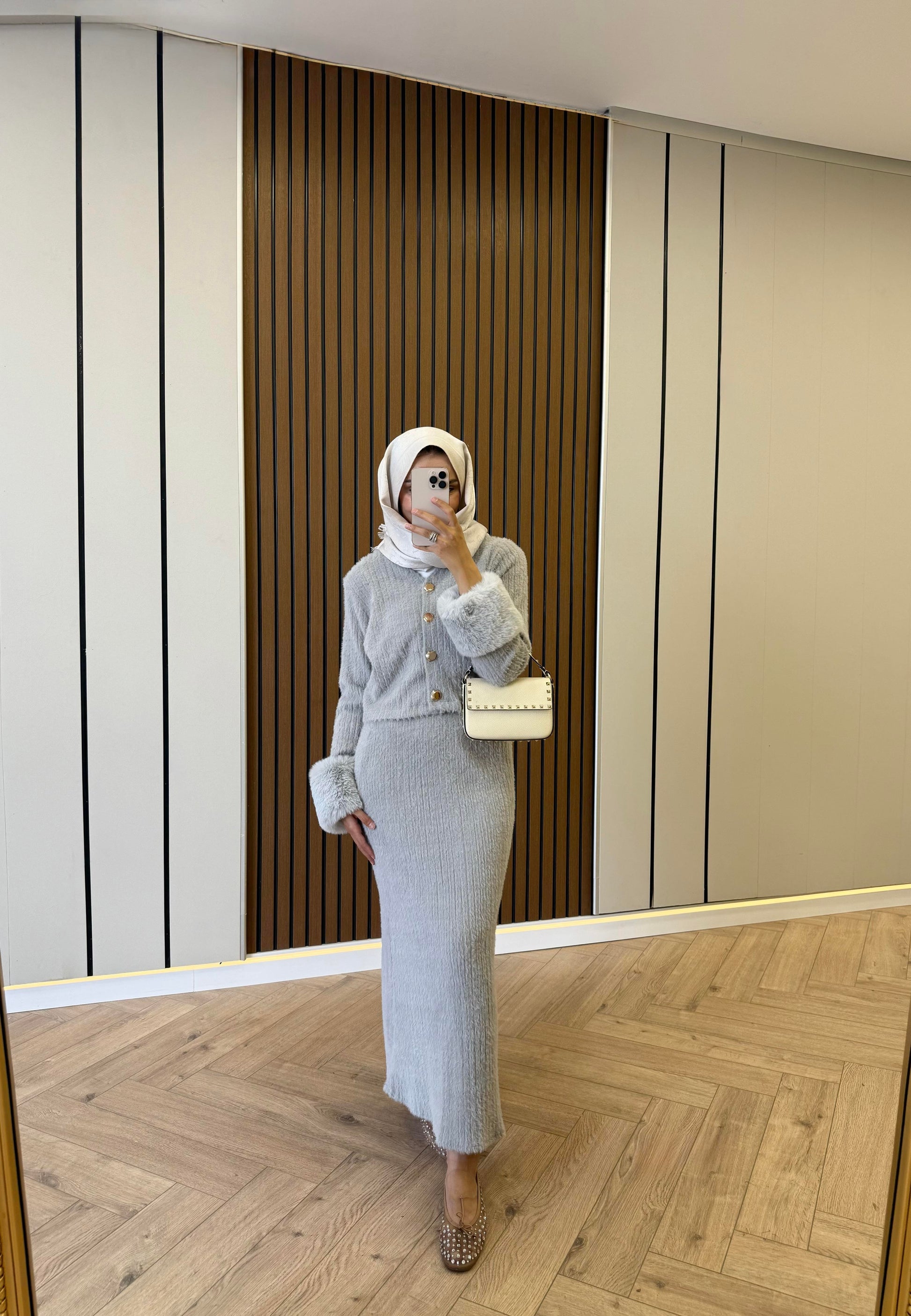 The Grey Cozy Two-Piece Set in grey is a cozy two-piece designed for both comfort and style. Crafted from soft-touch fabric, it offers a chic yet relaxed fit, perfect for everyday wear or lounging in style.