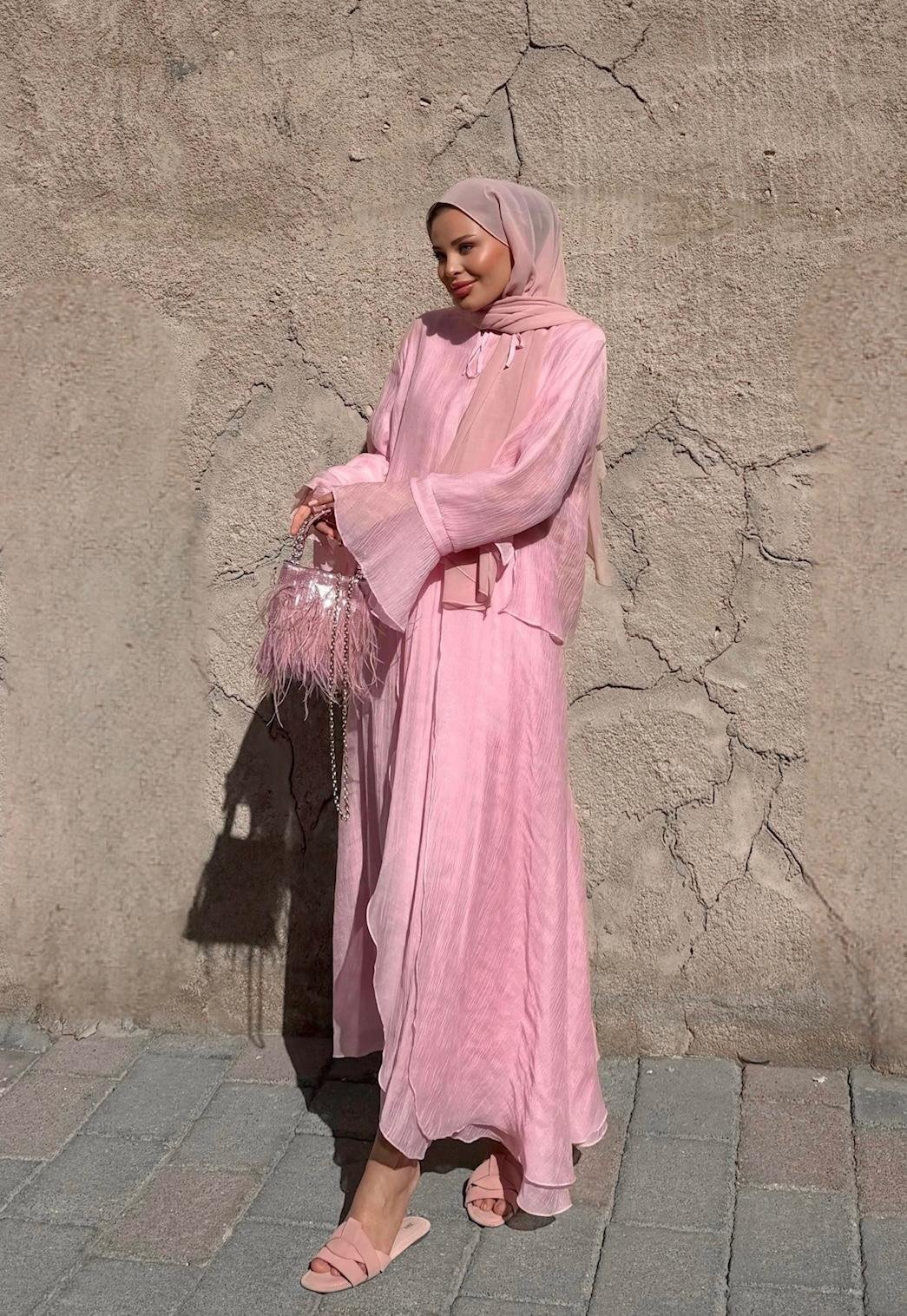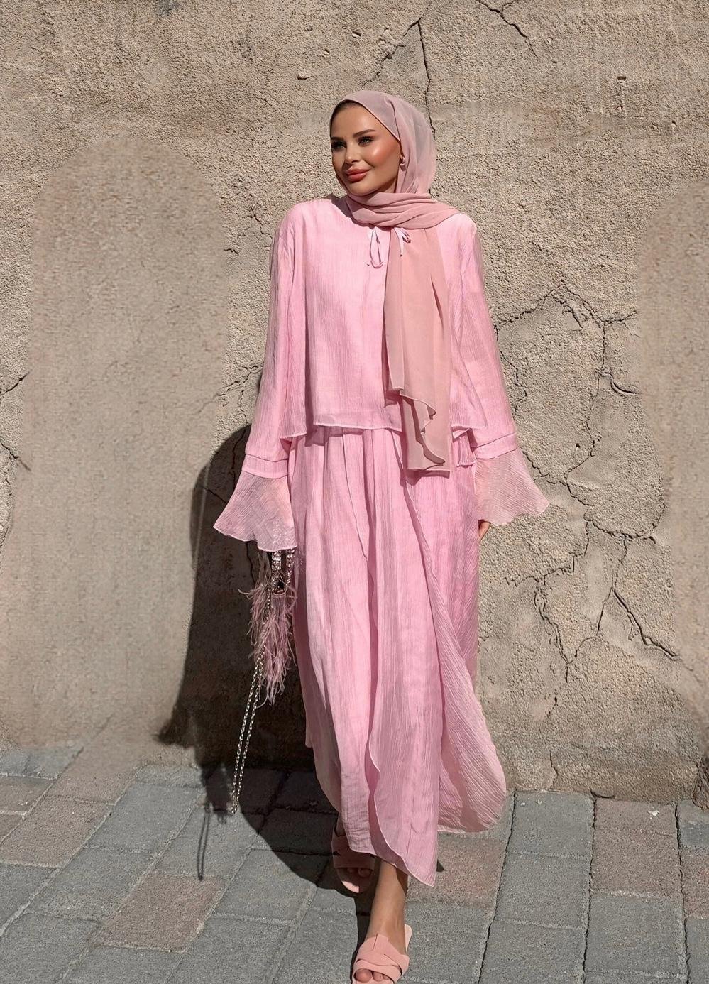 A refined two-piece set designed for effortless elegance in modest wear. Featuring a matching top and skirt, this set offers a clean silhouette with a soft, neutral tone that works perfectly for both daily styling and special occasions.