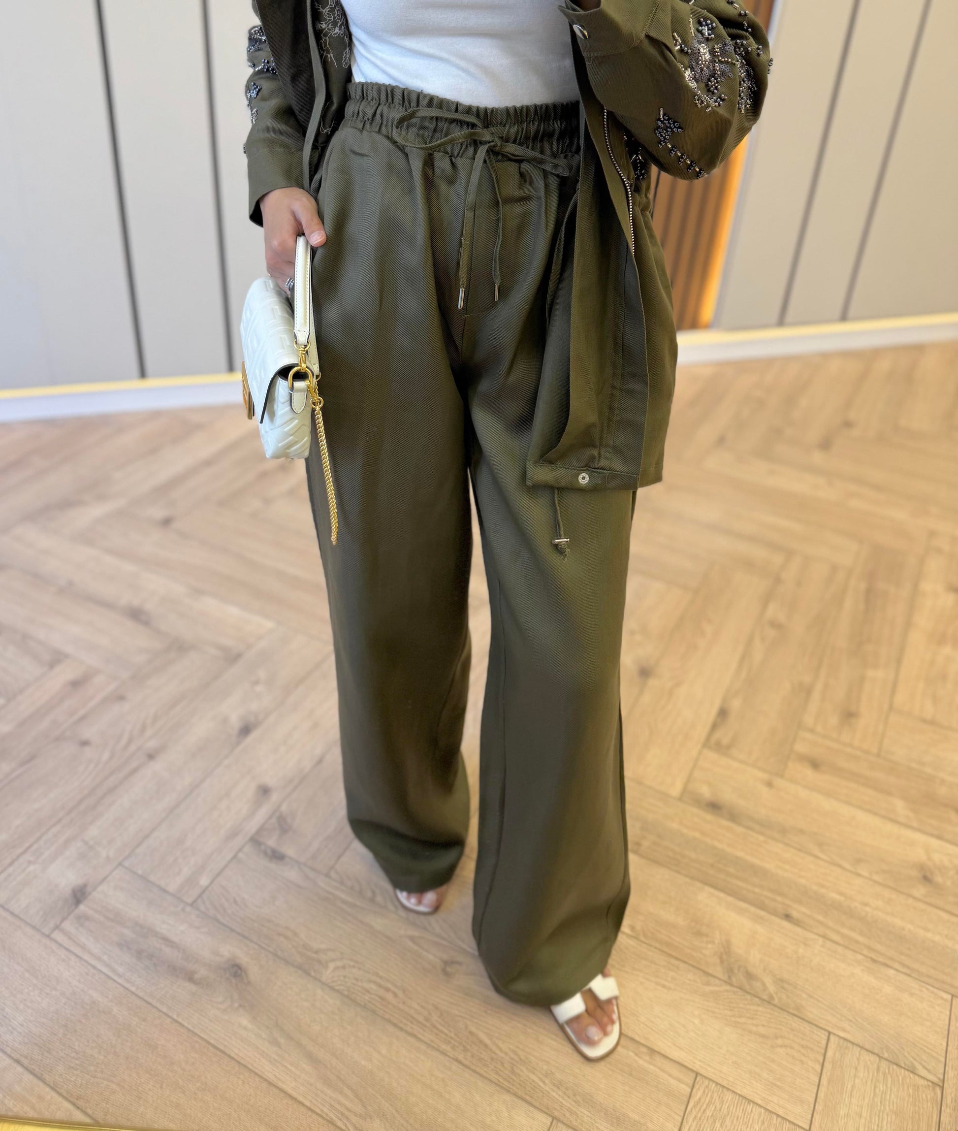 Limited Edition Tencel Set with Bead Embroidery- Khaki
