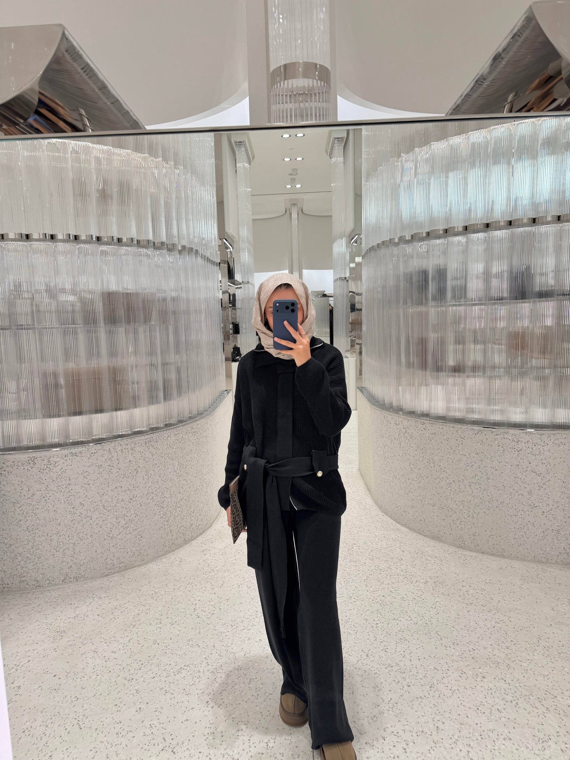 A two-piece knit set crafted from soft, breathable jersey-knit fabric for all-day comfort. The set includes a long-sleeve top and relaxed wide-leg trousers. The warm mocha-toned light-coffee colour adds a touch of understated sophistication—perfect for effortless everyday styling.
