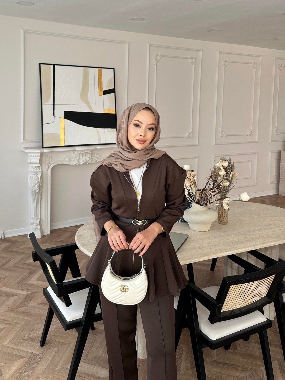 Premium Scuba Fabric Two-Piece Set -Dark Brown