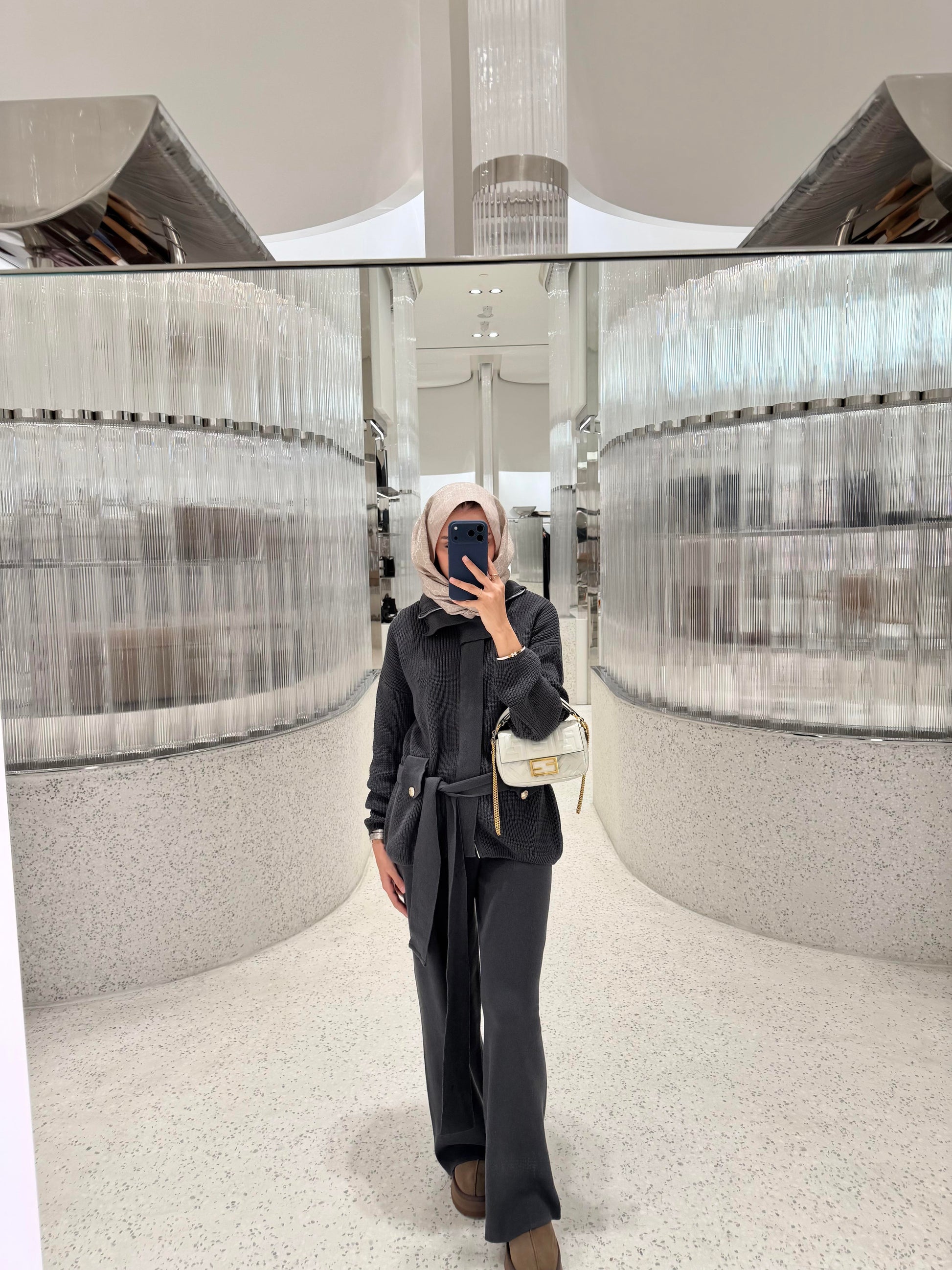 A two-piece knit set crafted from soft, breathable jersey-knit fabric for all-day comfort. The set includes a long-sleeve top and relaxed wide-leg trousers. The warm mocha-toned light-coffee colour adds a touch of understated sophistication—perfect for effortless everyday styling.
